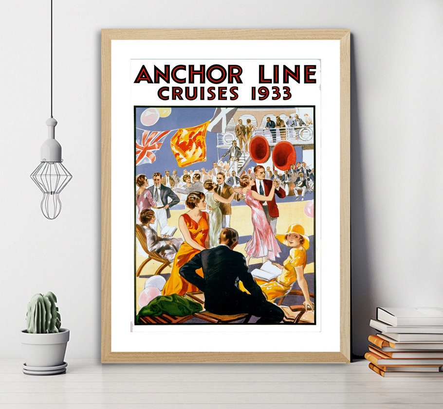 Anchor Line Cruises Vintage Travel Poster: 1933 Art Deco Print