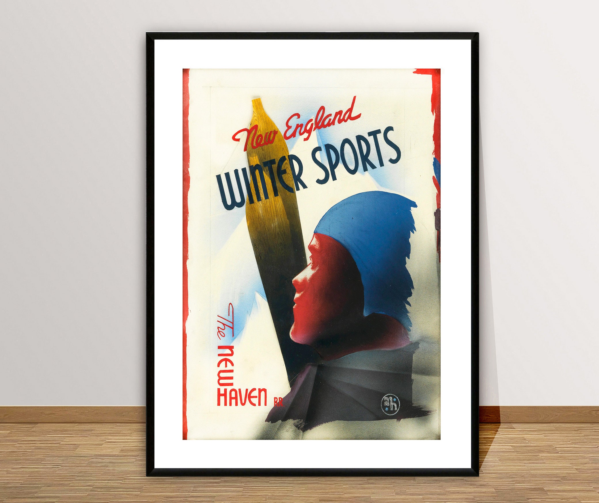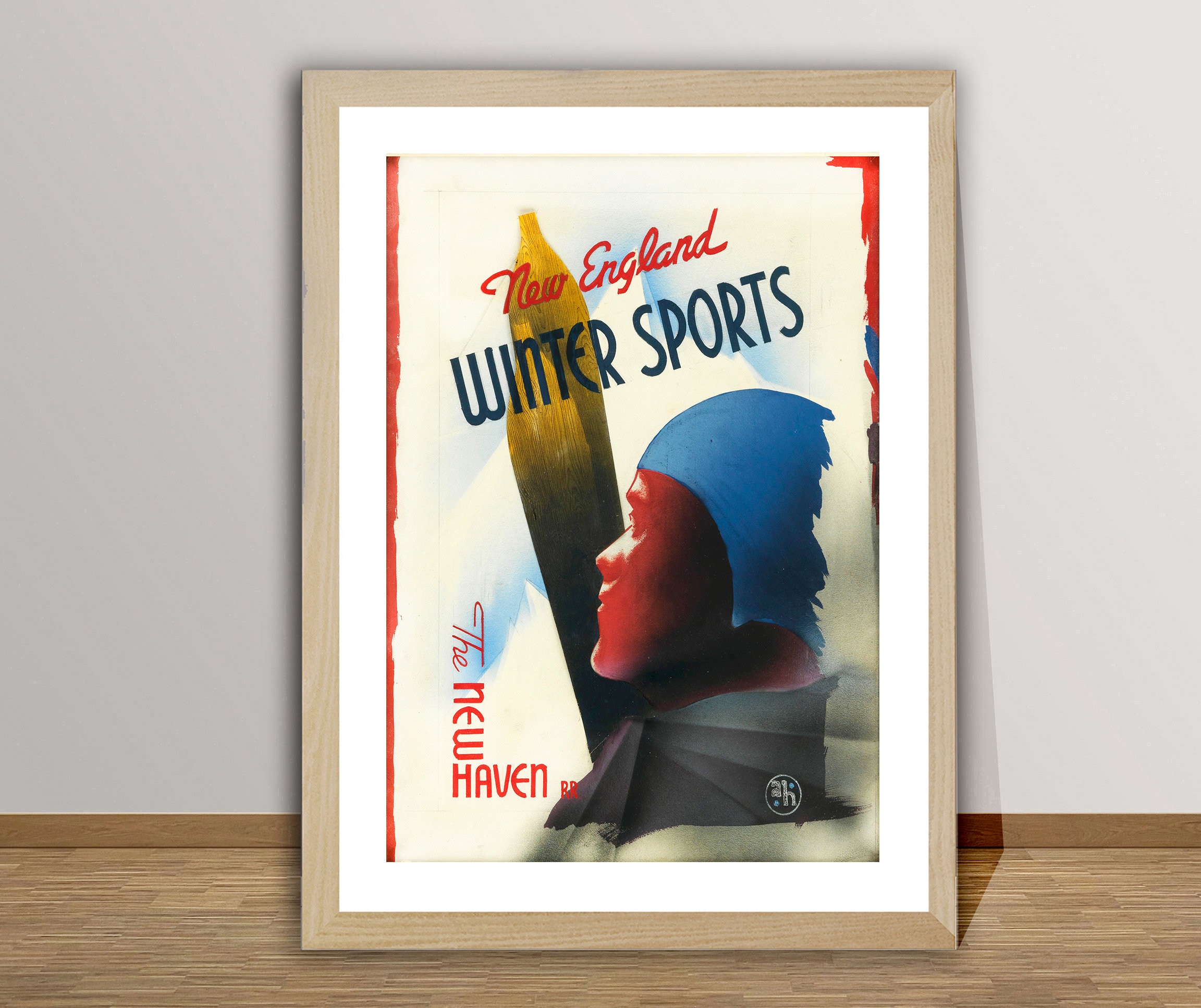 New England Winter Sports New Haven Vintage Ski Poster - Poster Paper or Canvas Print / Gift Idea