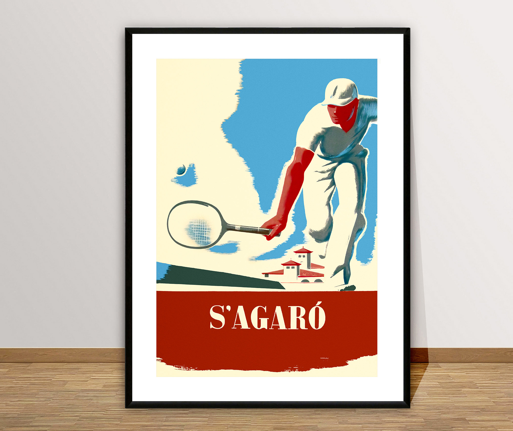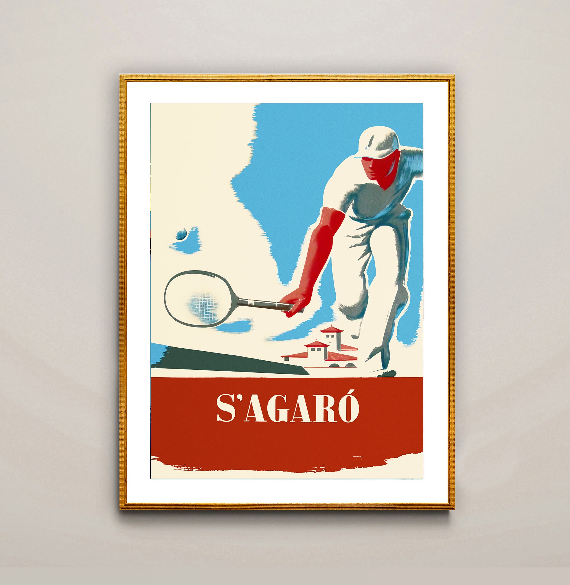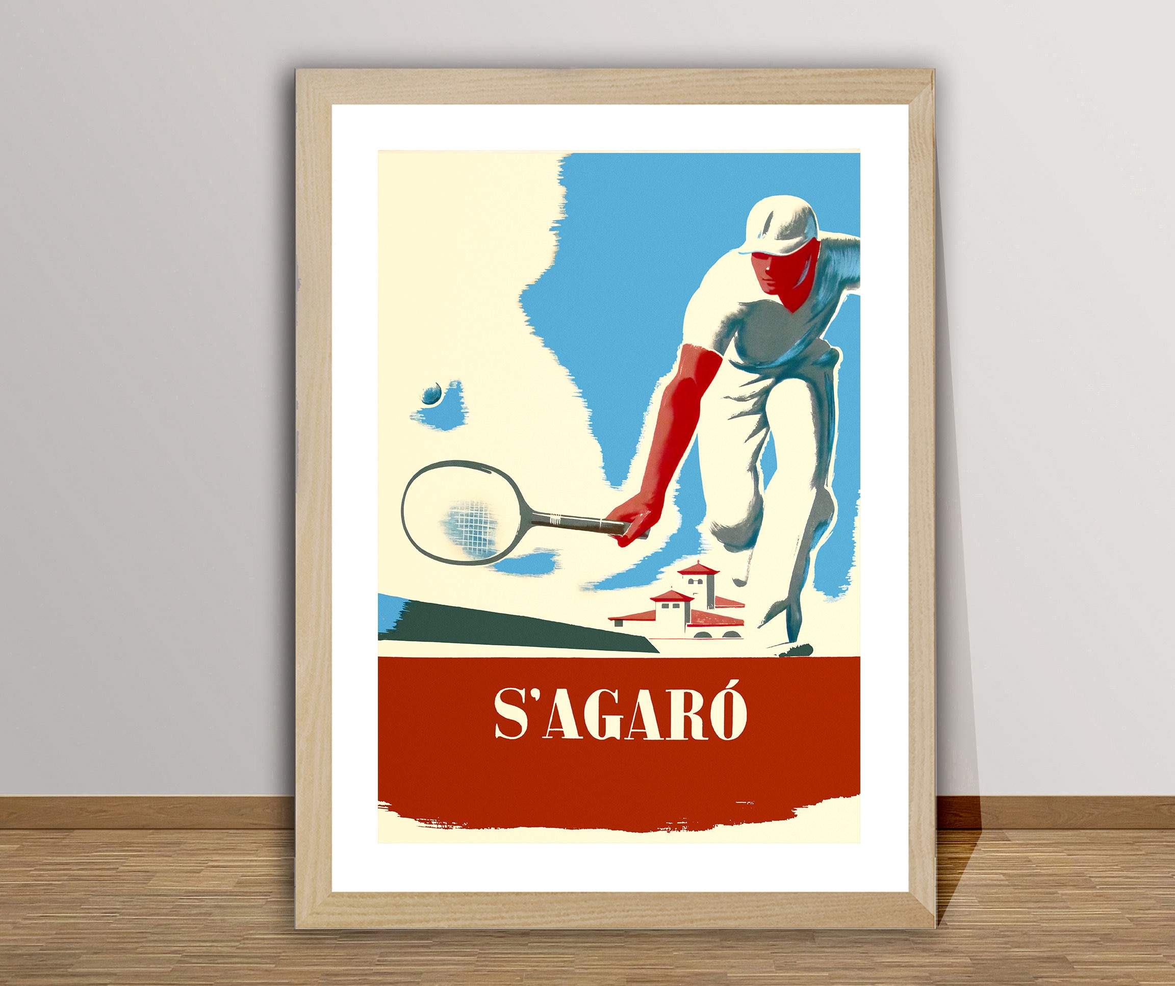 S'Agaro Tennis Player Vintage Poster: Sport Wall Decor