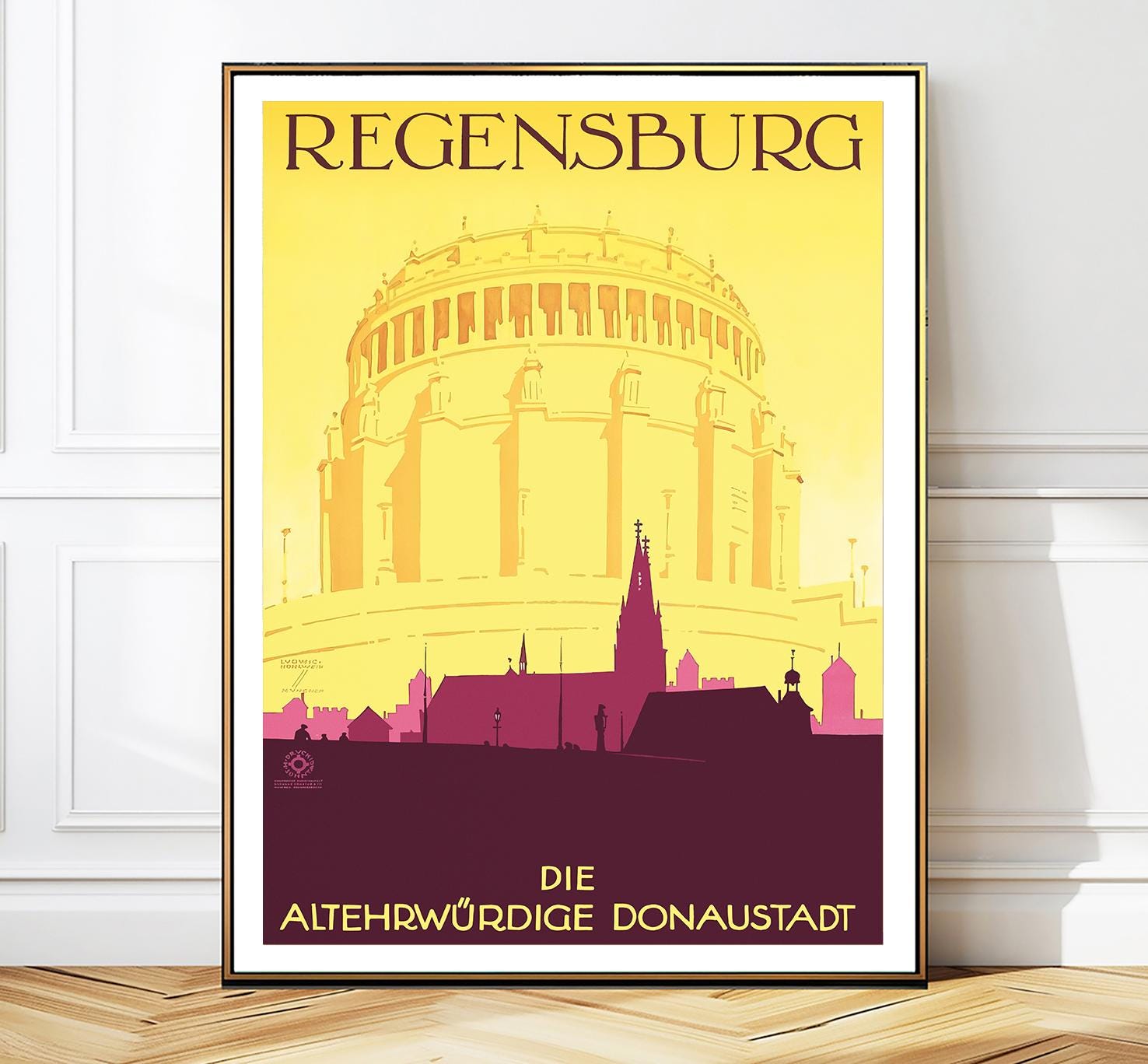 Regensburg Germany Vintage Travel Poster: Retro Wall Art