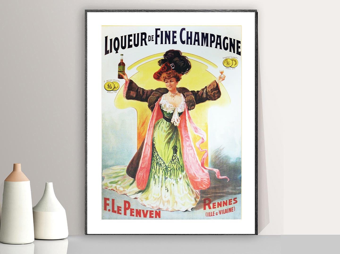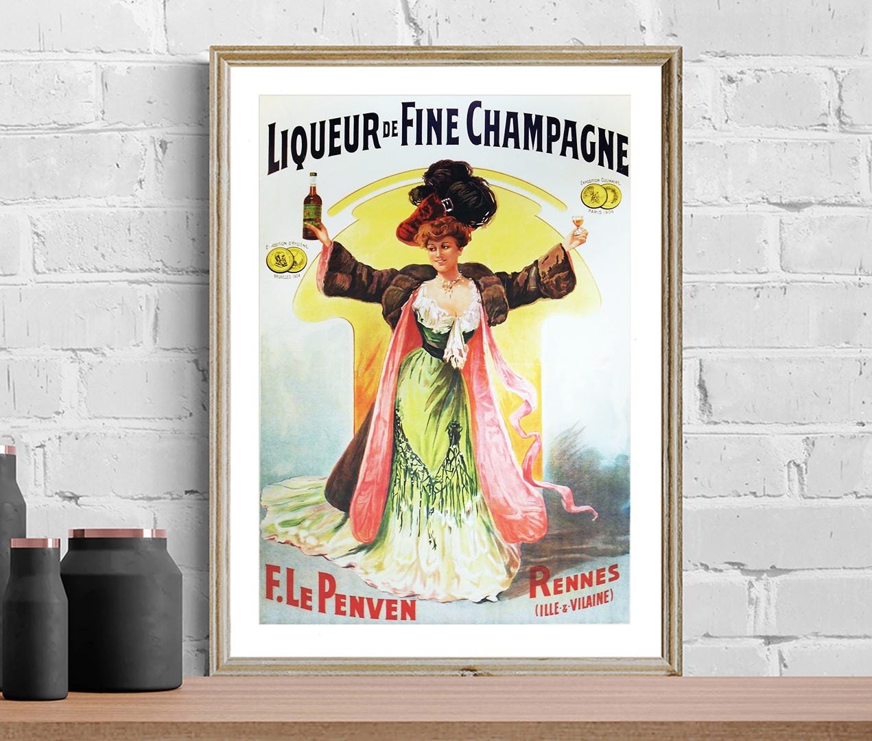 Vintage Liqueur de Fine Champagne Advertisement Art Print - Reproduction of a Vintage Drink Artwork, Decorative Purposes Wall Decor - Poster Print or Canvas Print / Gift Idea / Wall Decor