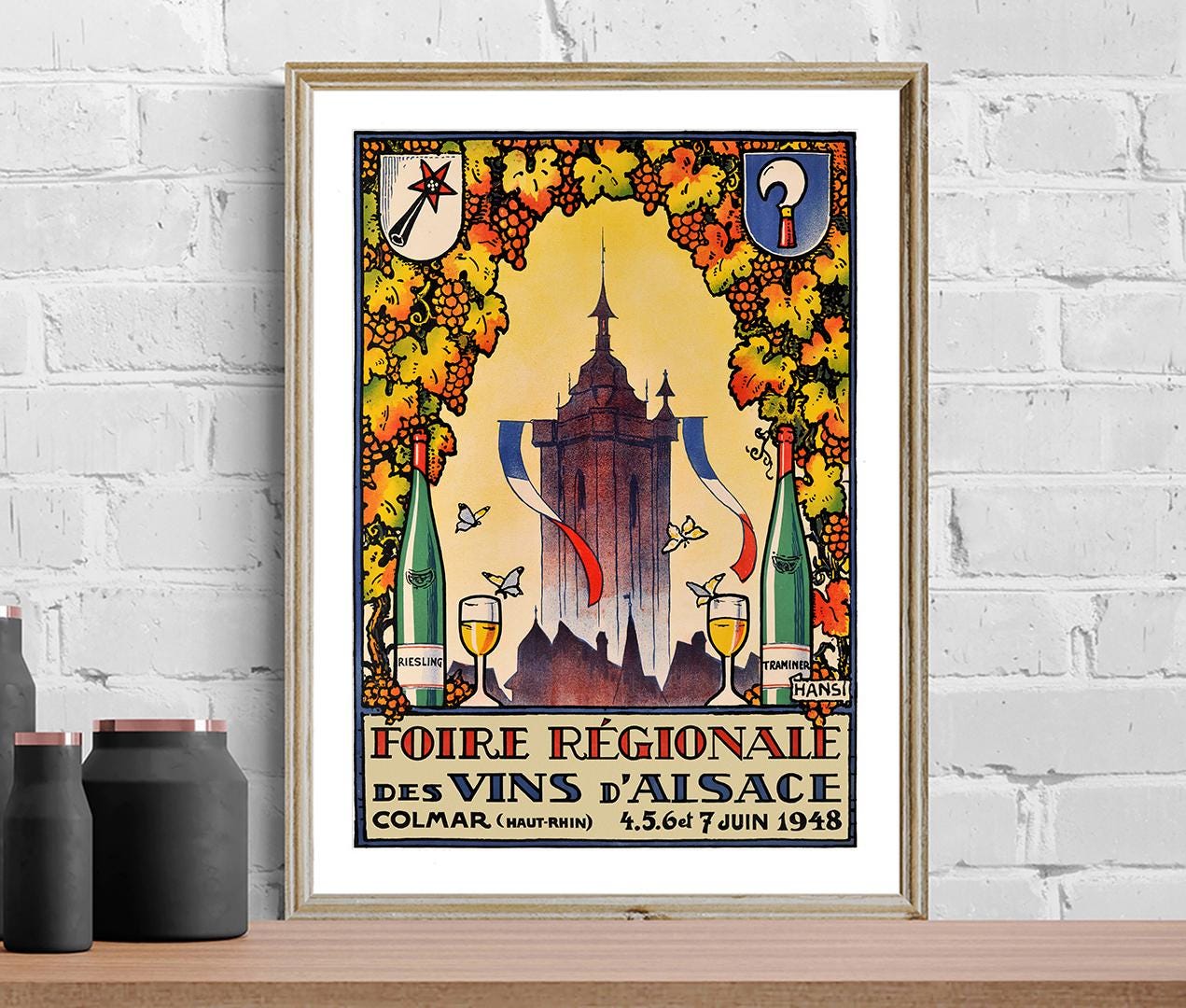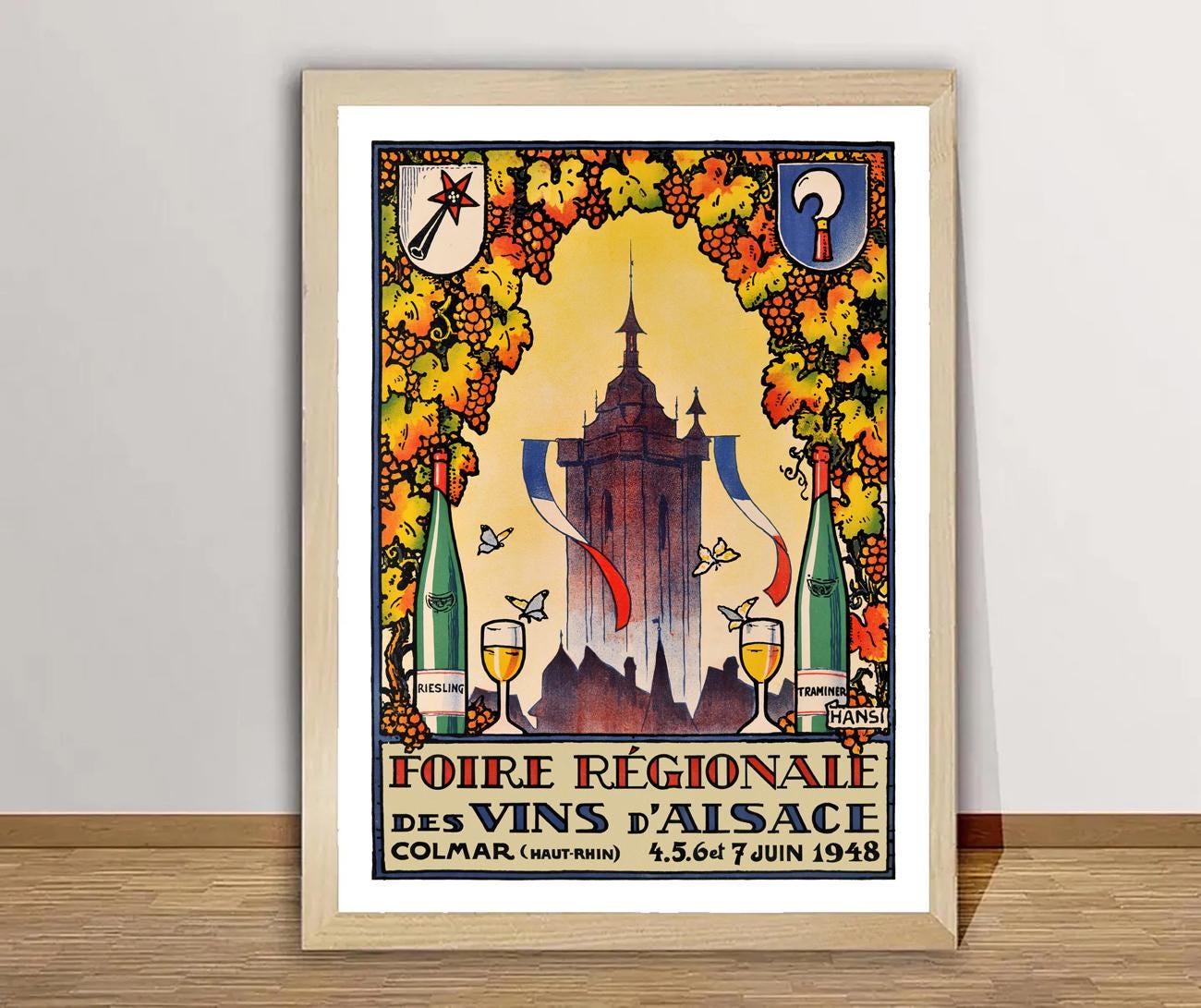 Vintage Foire Regionale des Vins d'Alsace, Colmar Advertisement (1948) Art Print, Reproduction of a Retro Artwork, Decorative Purposes Wall Decor