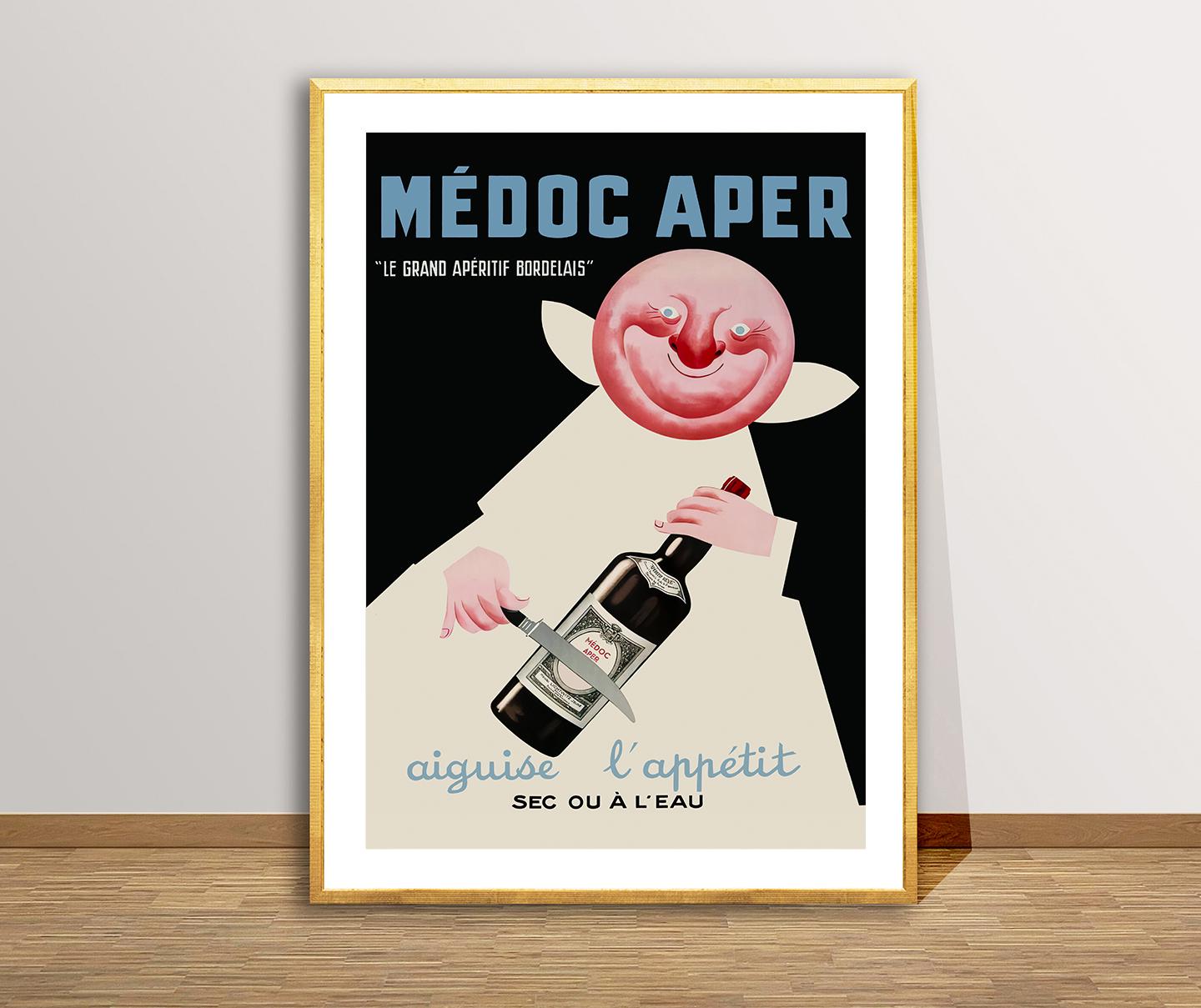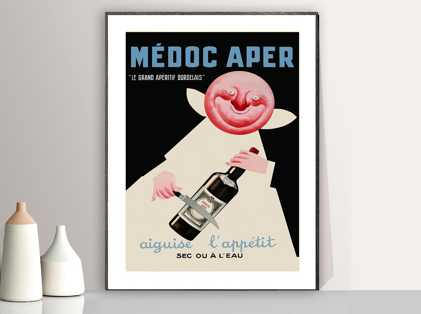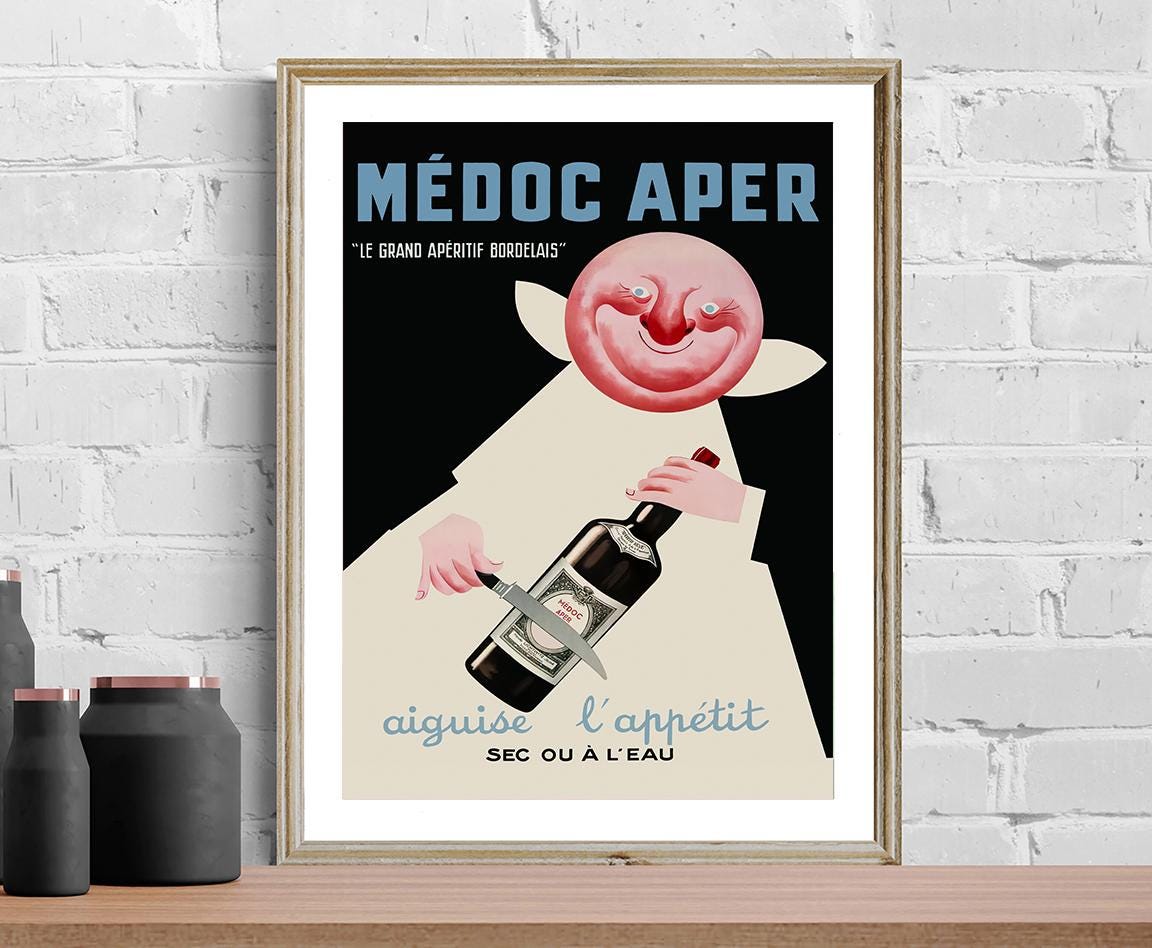 Vintage Medoc Aper French Aperitif Advertisement Art Print - Reproduction of a Vintage Artwork, Decorative Purposes Wall Decor - Poster Paper or Canvas Print / Gift Idea / Wall Decor