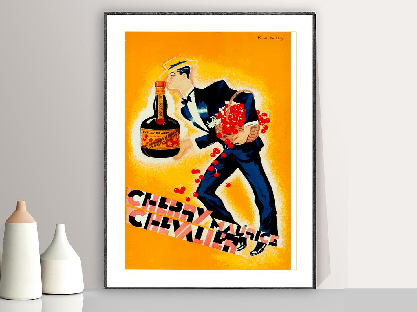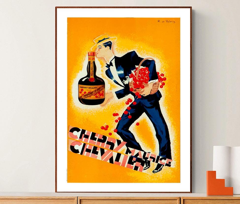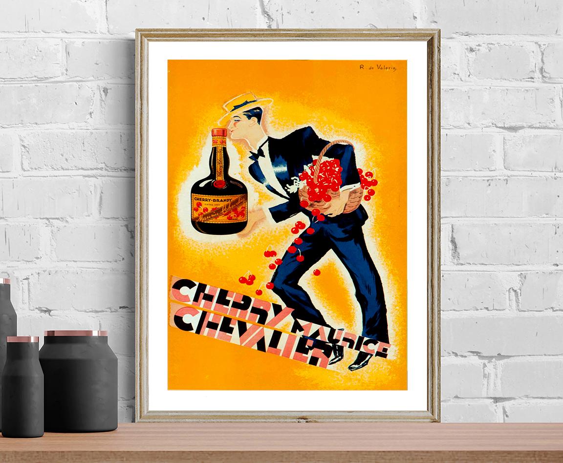 Vintage Cherry Maurice Chevalier Advertisement Art Print - Reproduction of a Vintage Artwork, Decorative Purposes Wall Decor - Poster Paper or Canvas Print / Gift Idea / Wall Decor