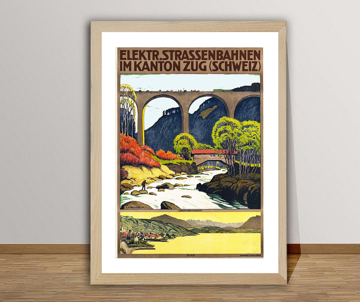 Elektr. Strassenbahnen im Kanton Zug Schweiz Vintage Travel Poster - Poster Print or Canvas Print / Gift Idea / Wall Decor