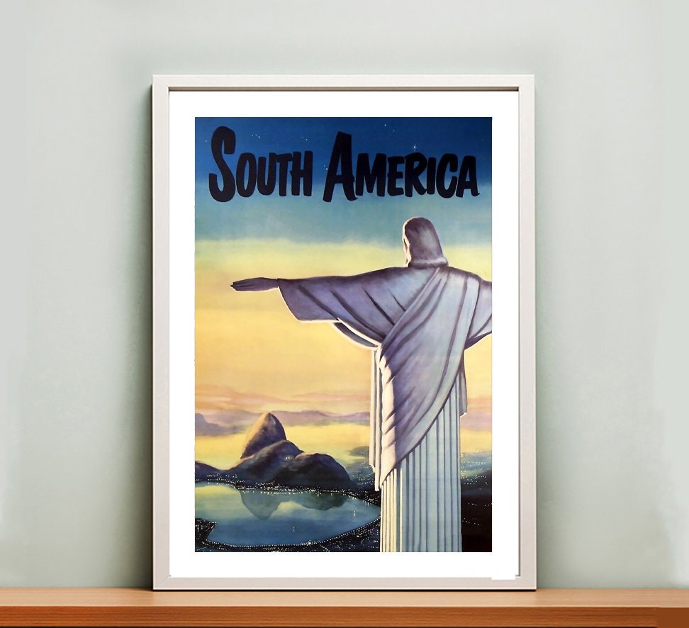 South America Vintage Travel Poster - Poster Paper or Canvas Print / Gift Idea
