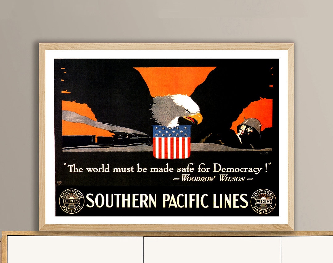The World must be Made Safe for Democracy, Woodrow Wilson Vintage Poster - Poster Paper or Canvas Print / Gift Idea