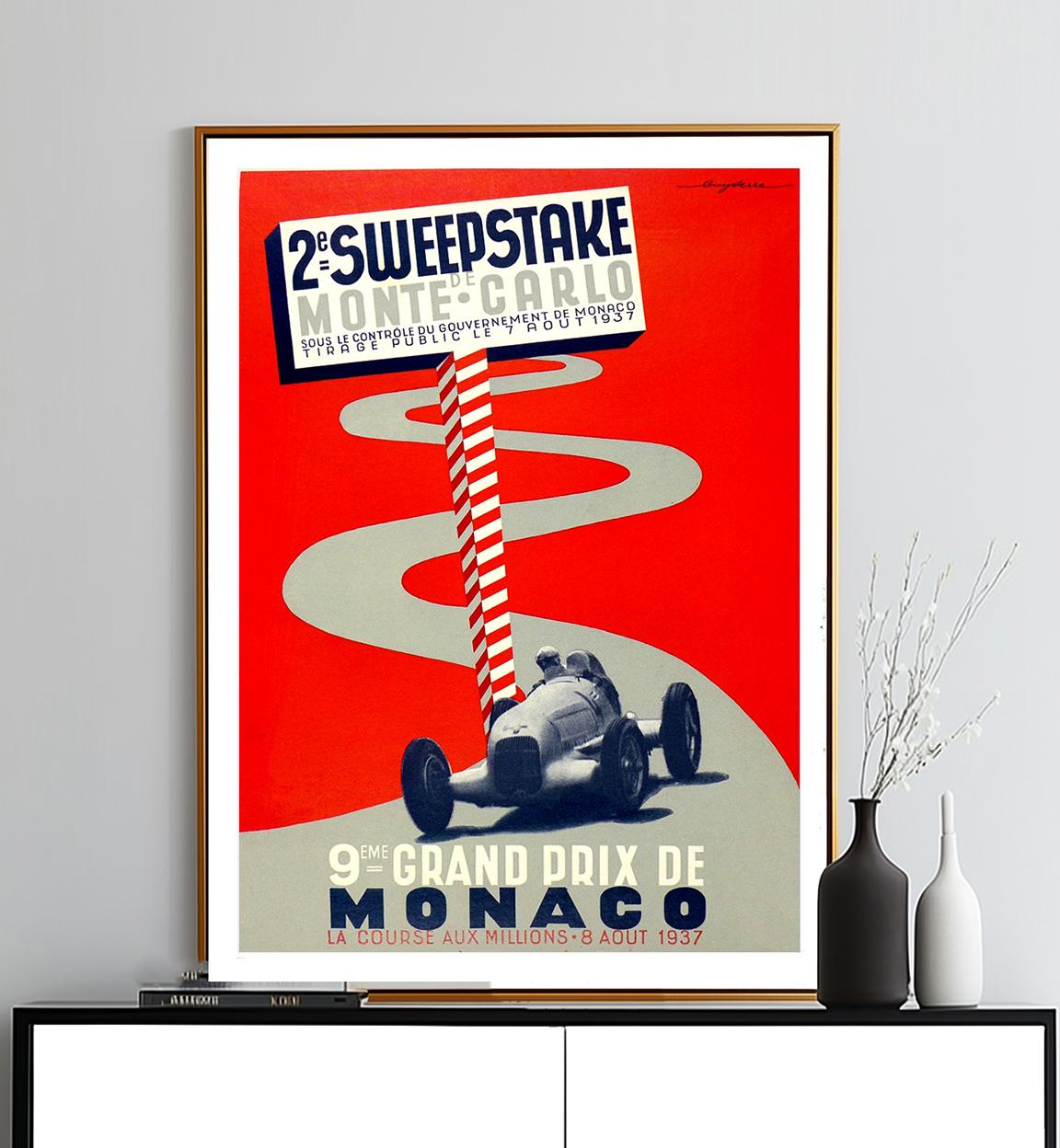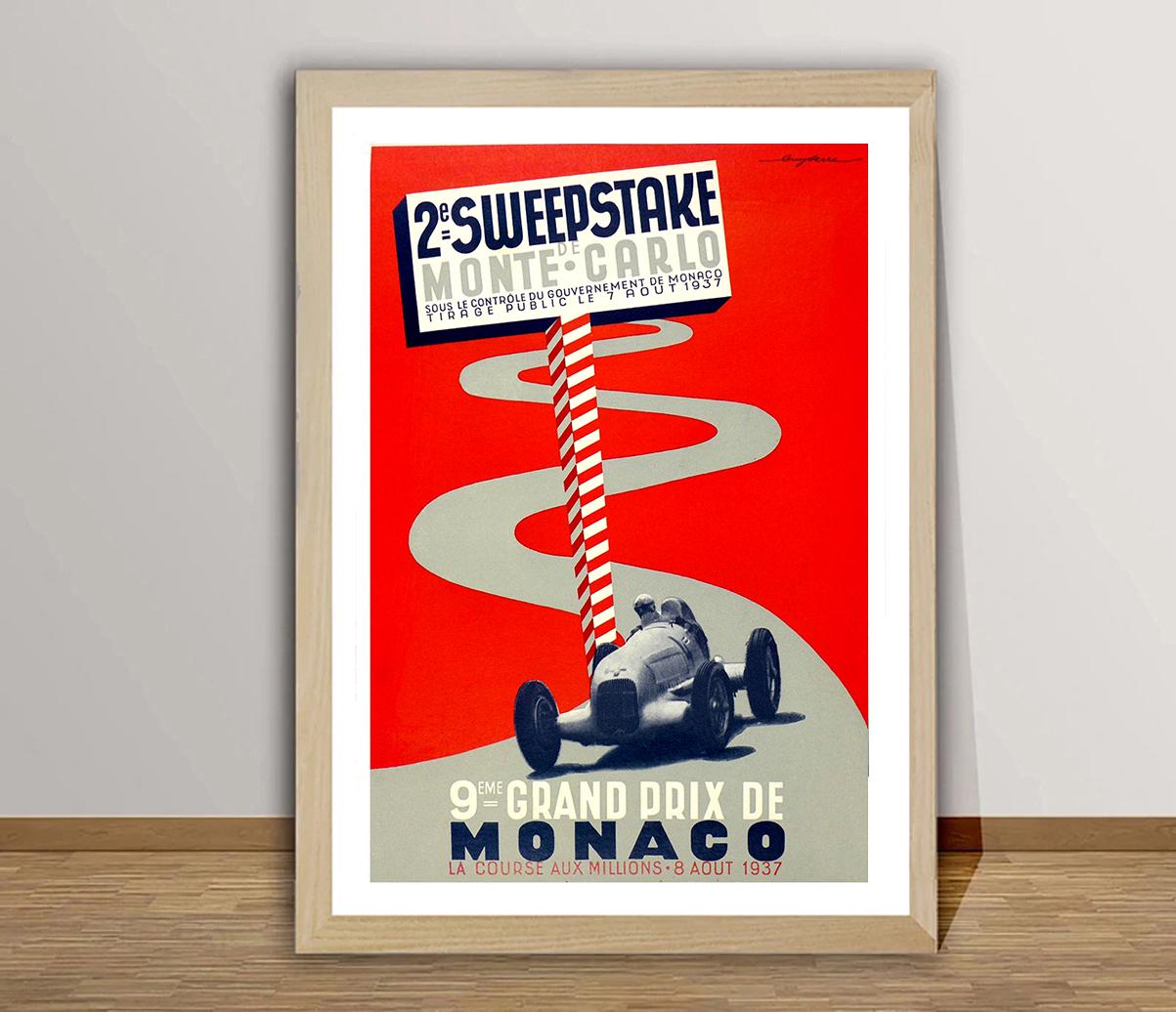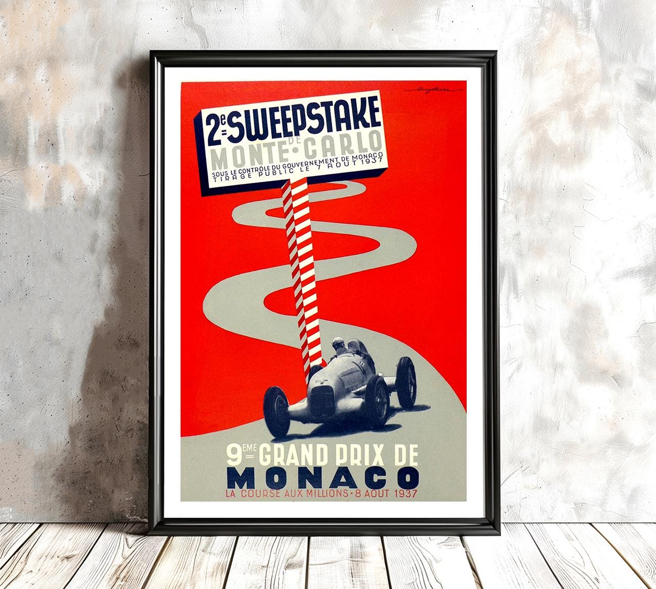 2 Sweepstake de Monte Carlo, 9 eme Grand Prix de Monaco Grand Prix, 1937 Vintage Grand Prix Poster - Poster Paper or Canvas Print