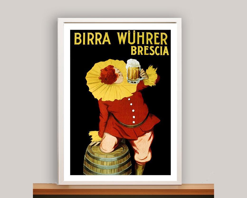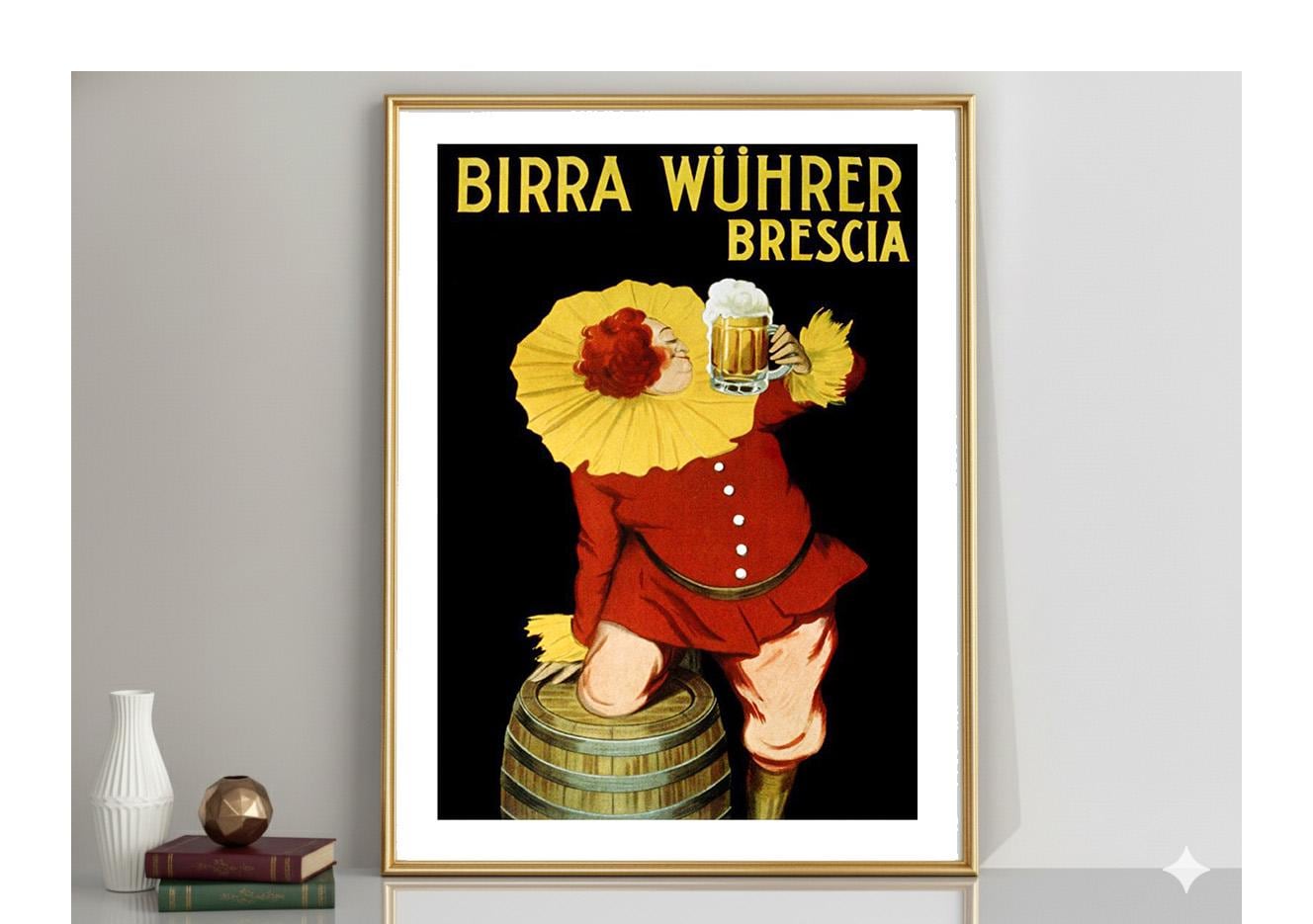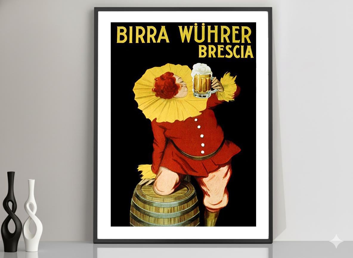Vintage Birra Wührer, Brescia Advertisement Art Print - Reproduction of a Vintage Artwork, Decorative Purposes Wall Decor