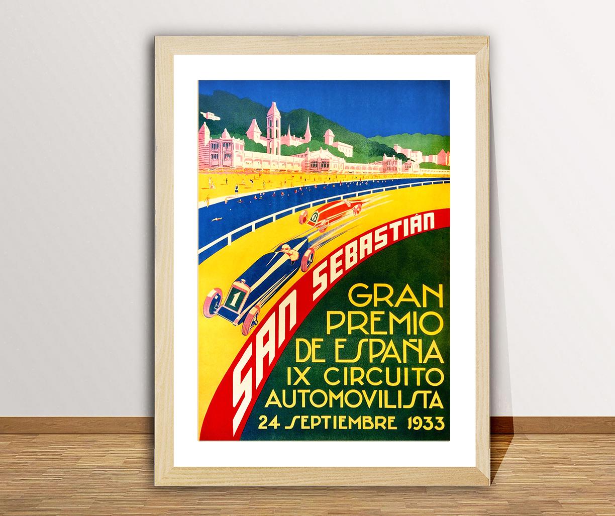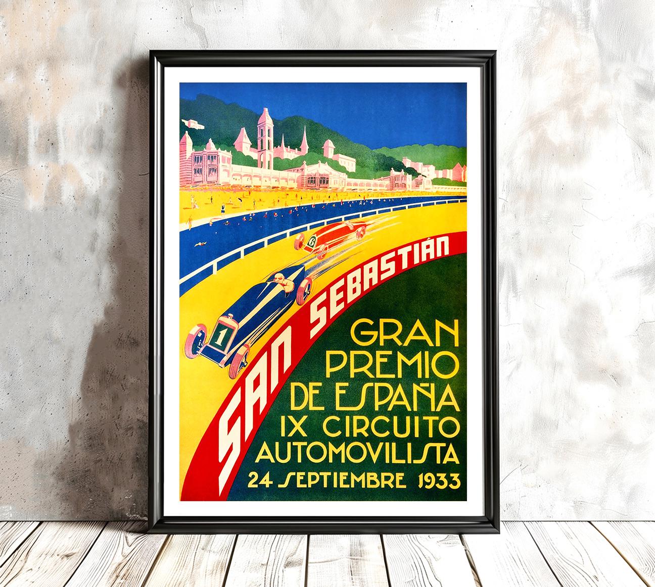 San Sebastian Gran Premio de Espana, IX. Circuito Automovilista 1933 Vintage Grand Prix Poster - Poster Paper or Canvas Print