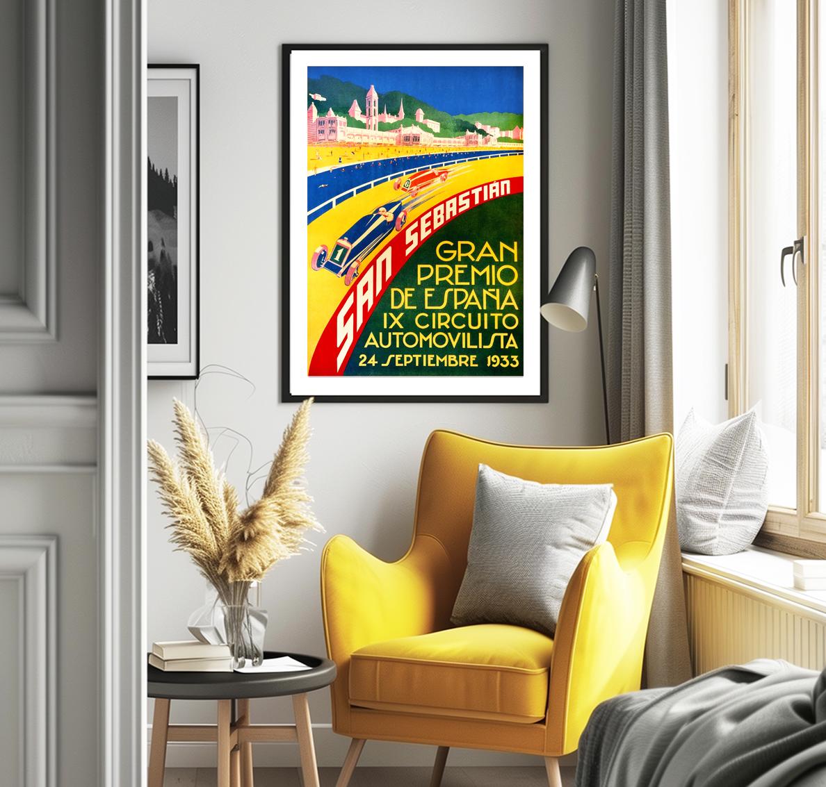 San Sebastian Gran Premio de Espana, IX Circuito Automovilista, 1933 Vintage Grand Prix Poster - Gift Idea / Wall Decor