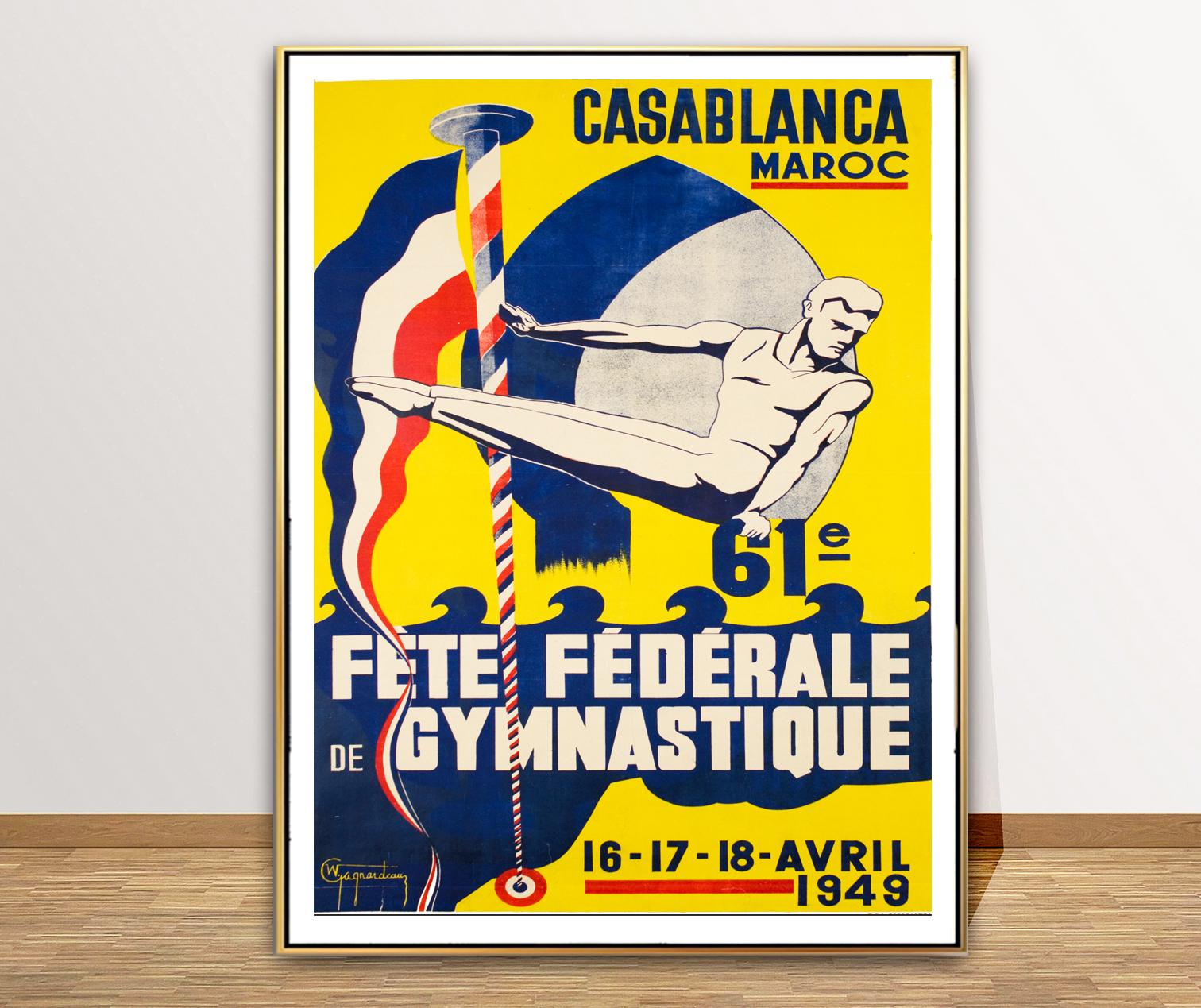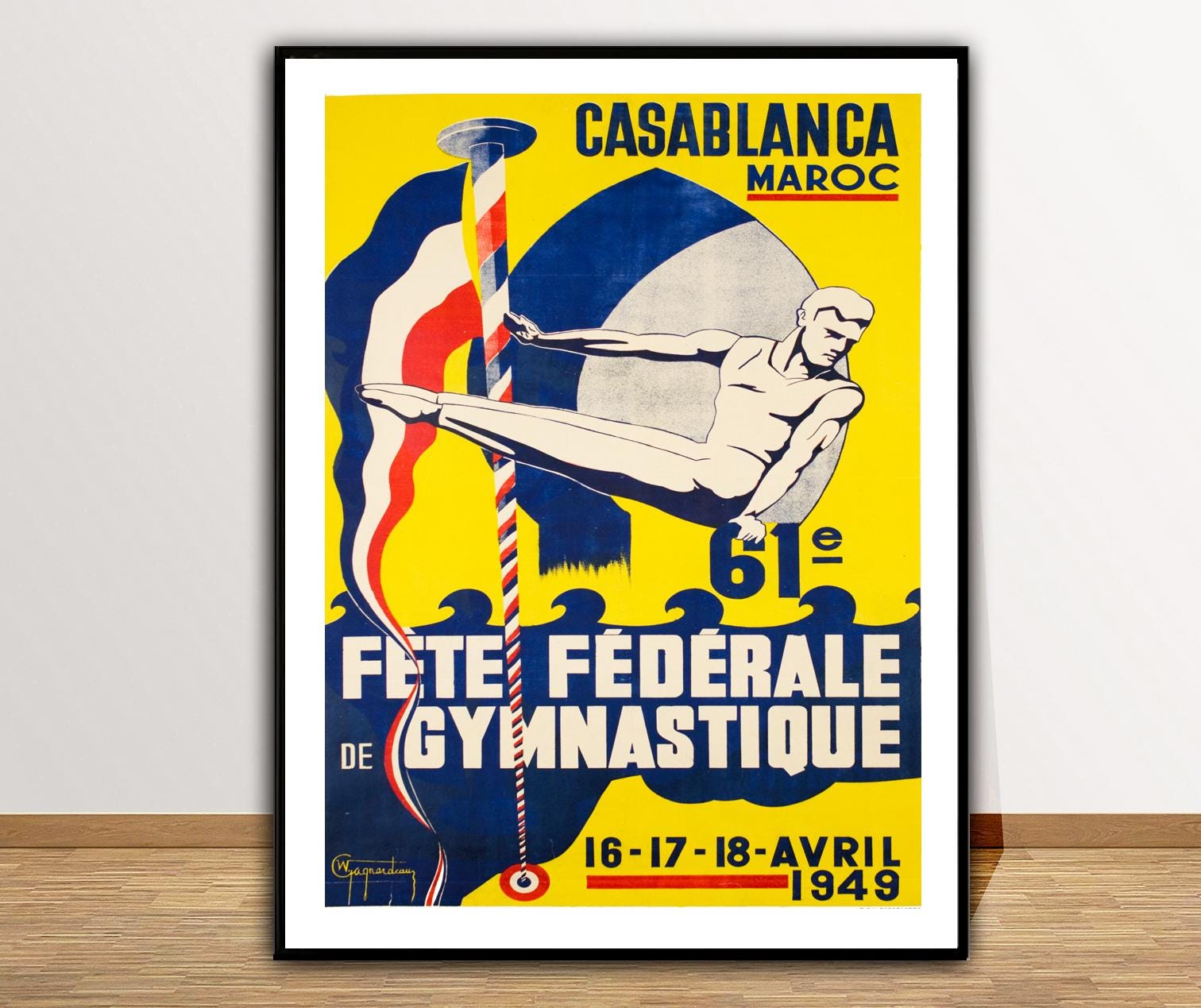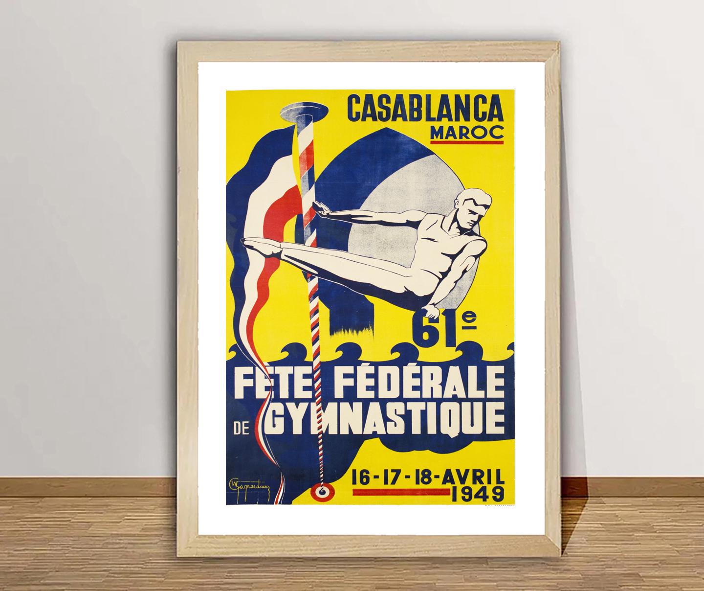 Fete Federale de Gymnastique, Casablanca Maroc, Vintage Sport Poster - Poster Paper or Canvas Print / Gift Idea / Wall Decor