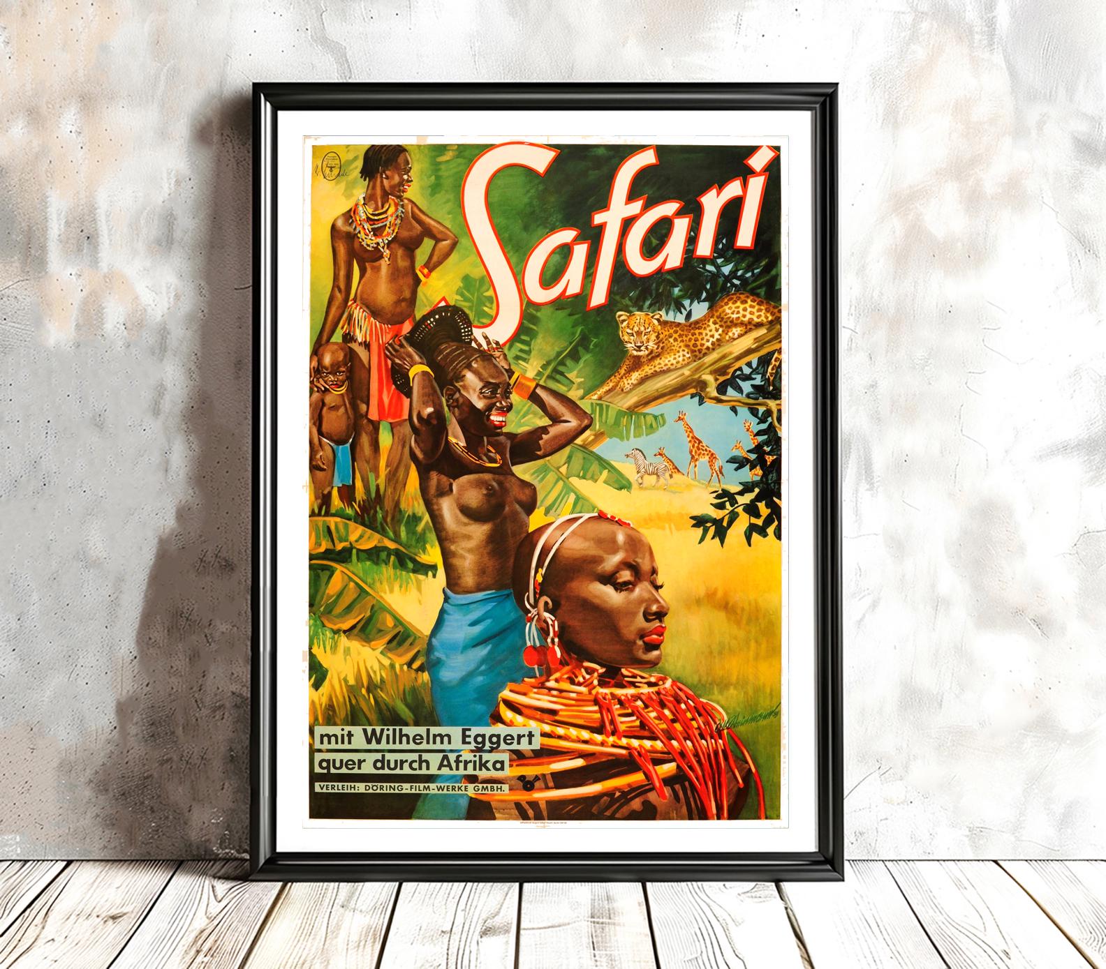 Vintage Safari Africa Travel Poster: Retro Wall Art