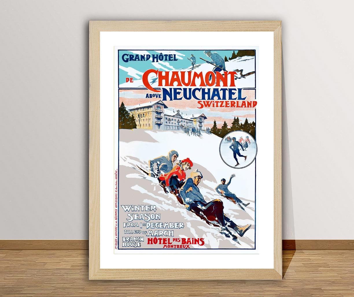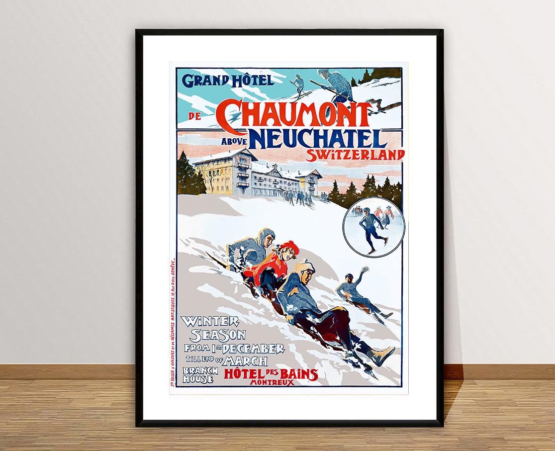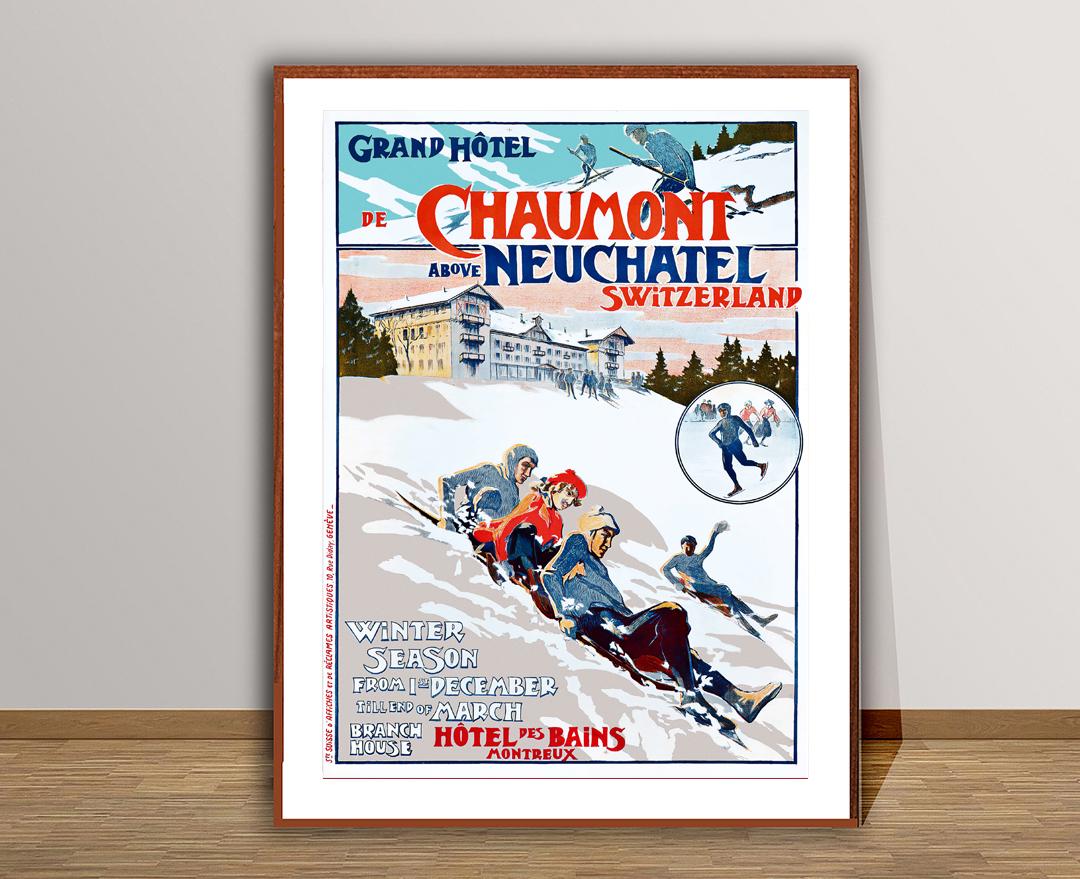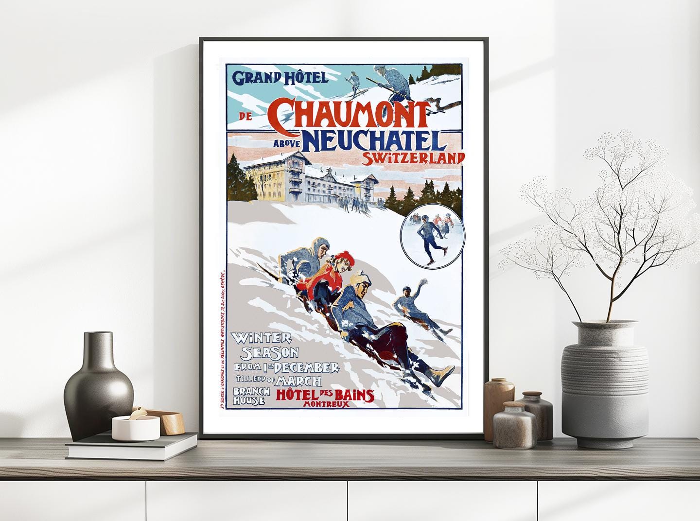 Vintage Grand Hotel Chaumont Ski Poster - Suisse Travel Art