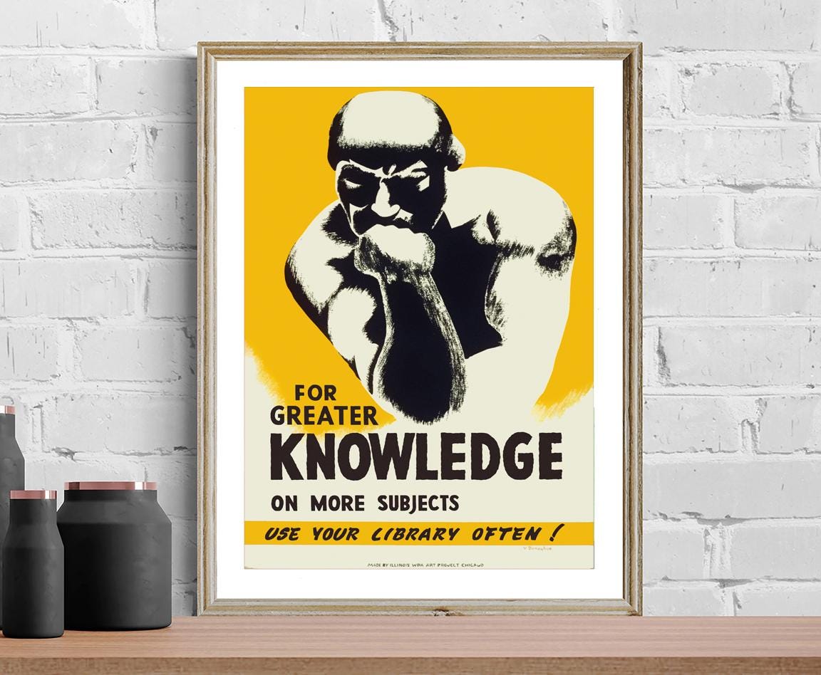 For Greater Knowledge on More Subjects , Use Your Library Often Vintage Motivational Poster - Book Lovers / Gift Idea / Wall Decor