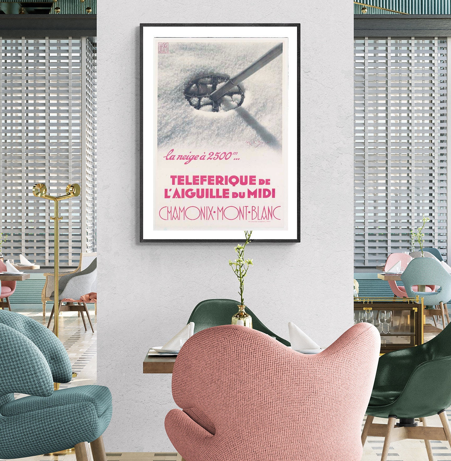 Vintage Chamonix Mont Blanc Ski Poster: Aiguille du Midi Travel Print