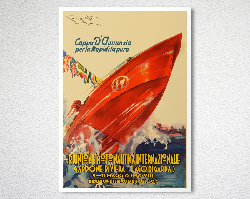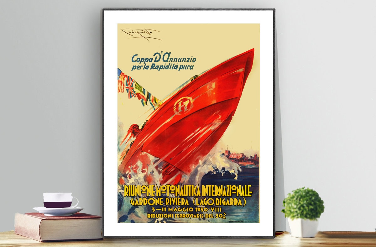 Moto Nautica Internazionale Gardone Riviera Vintage Grand Prix Poster - Moto Nautica Artwork, Racing Boats Poster, Sport Print
