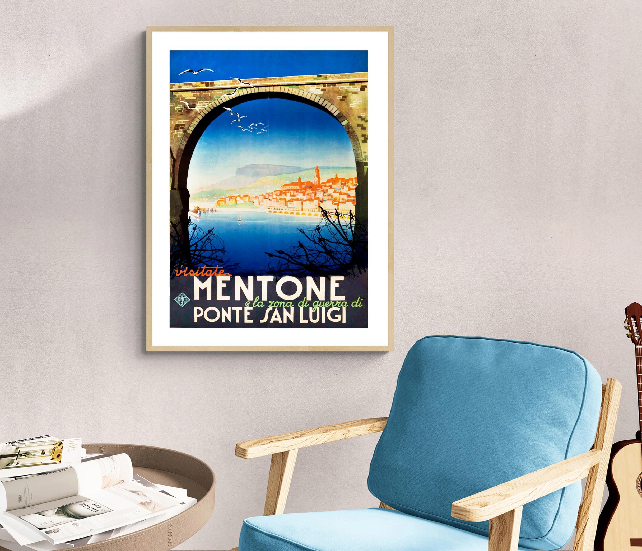 Menton France Vintage Travel Poster: Ponte San Luigi Print