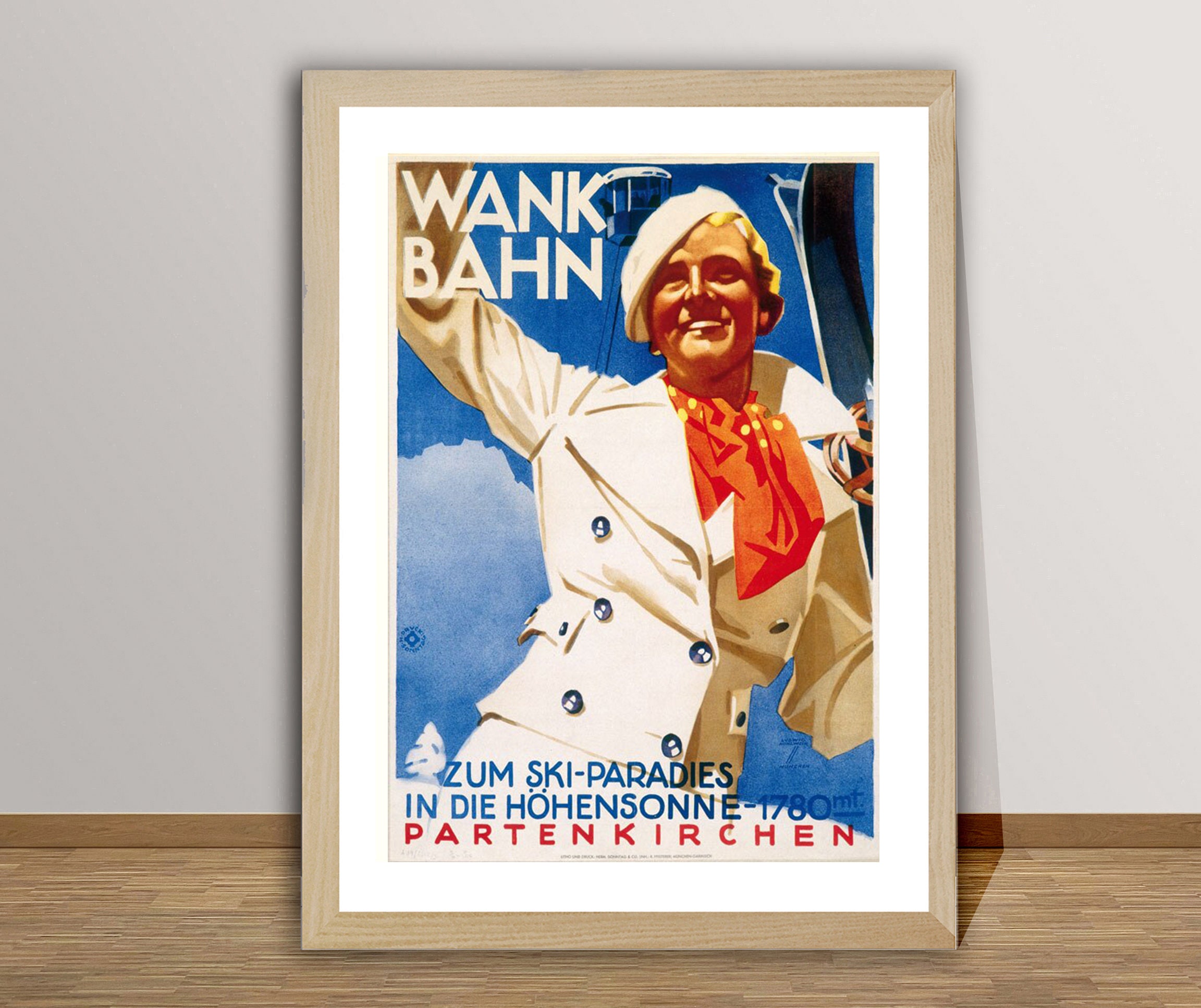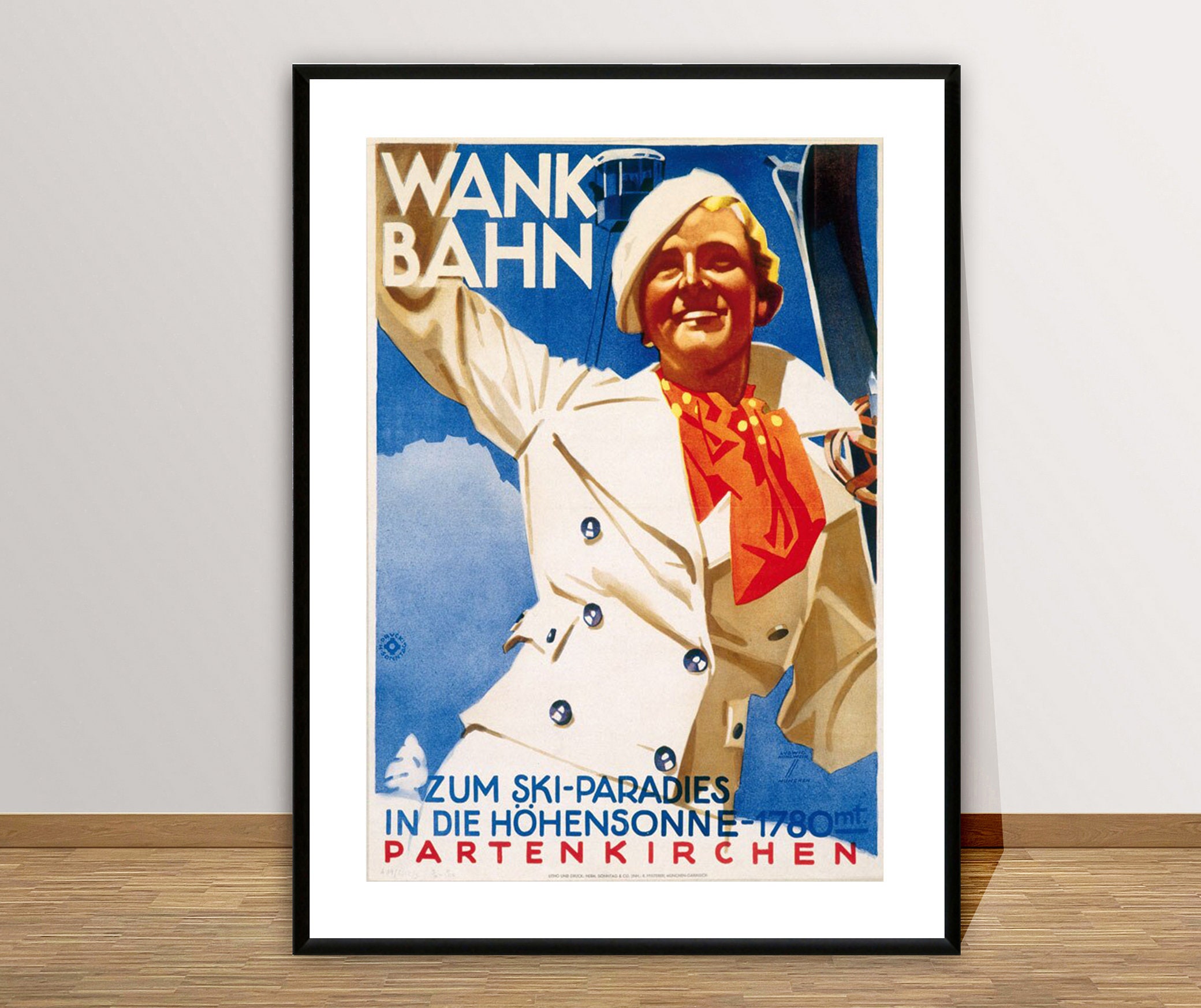 Wank Bahn zum Ski Paradies Partenkirchen Deutschland Vintage Travel Poster - Poster Paper or Canvas Print / Gift Idea / Wall Decor