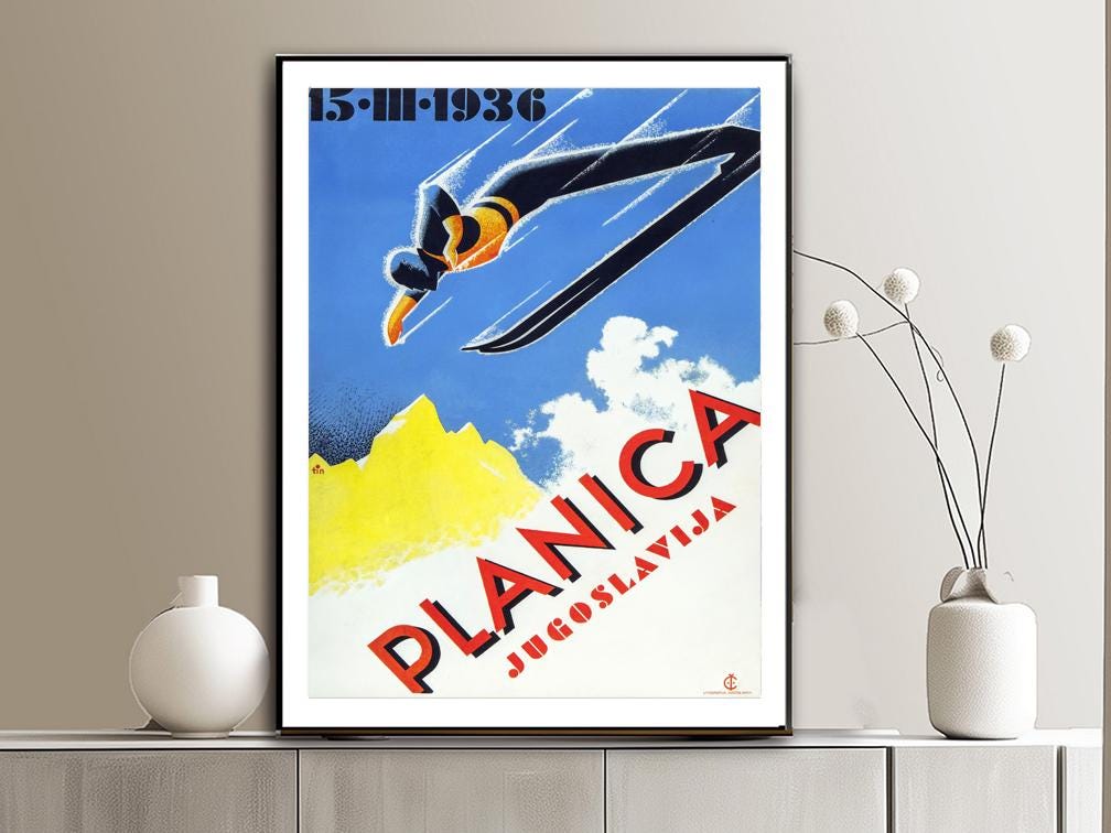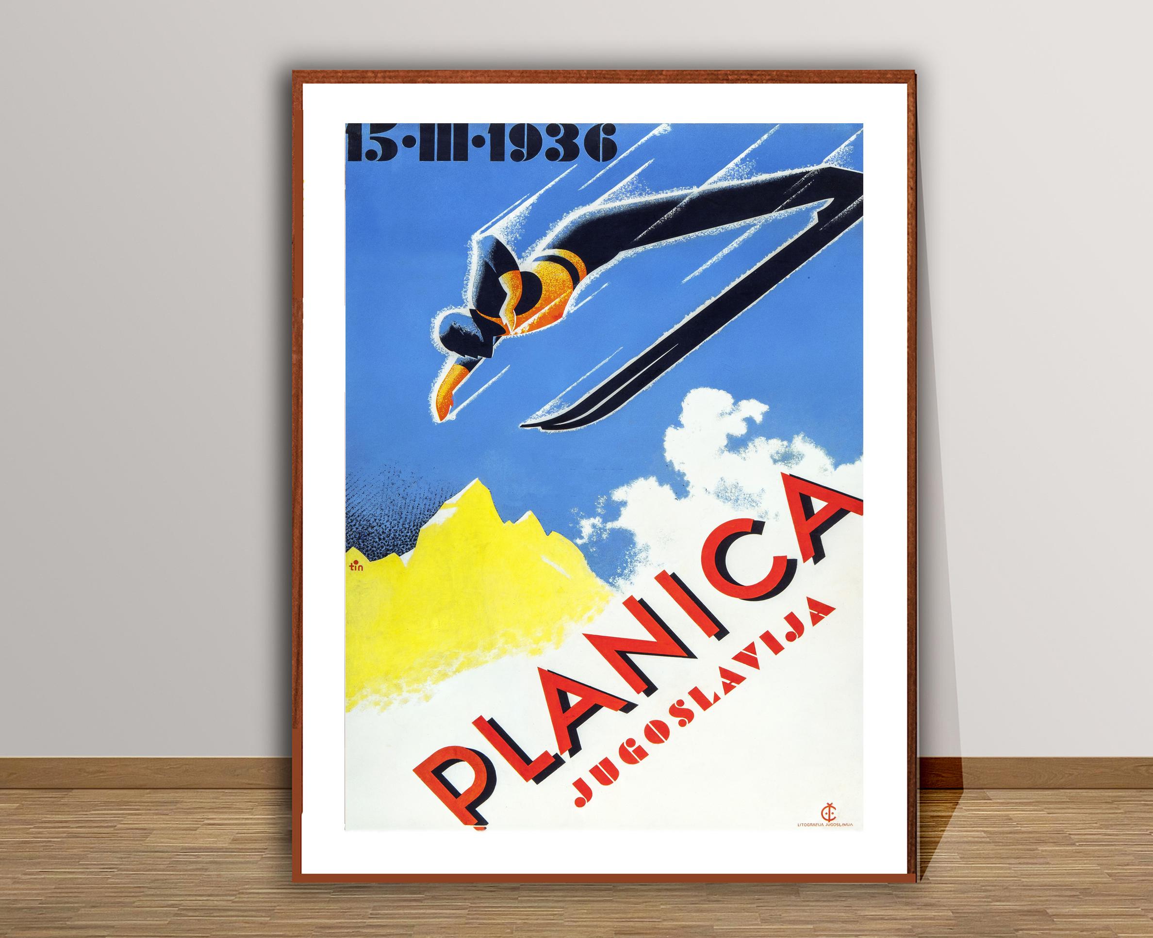 Planica Yugoslavia Vintage Ski Poster: Retro Wall Art