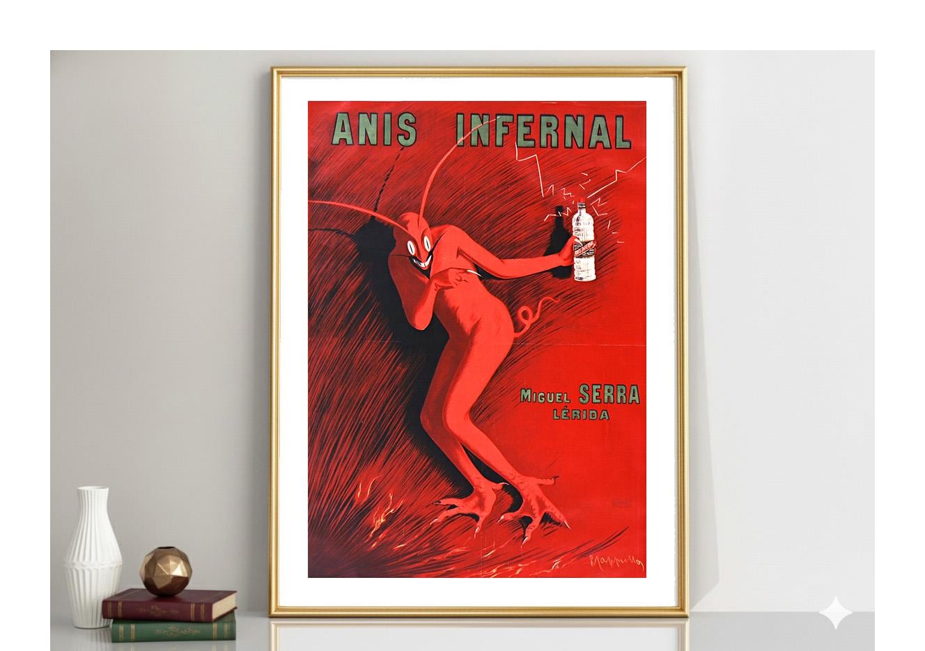 Vintage Anis Infernal Miguel Serra Lerida Advertisement Art Print - Reproduction of a Vintage Drink Artwork, Decorative Purposes Wall Decor