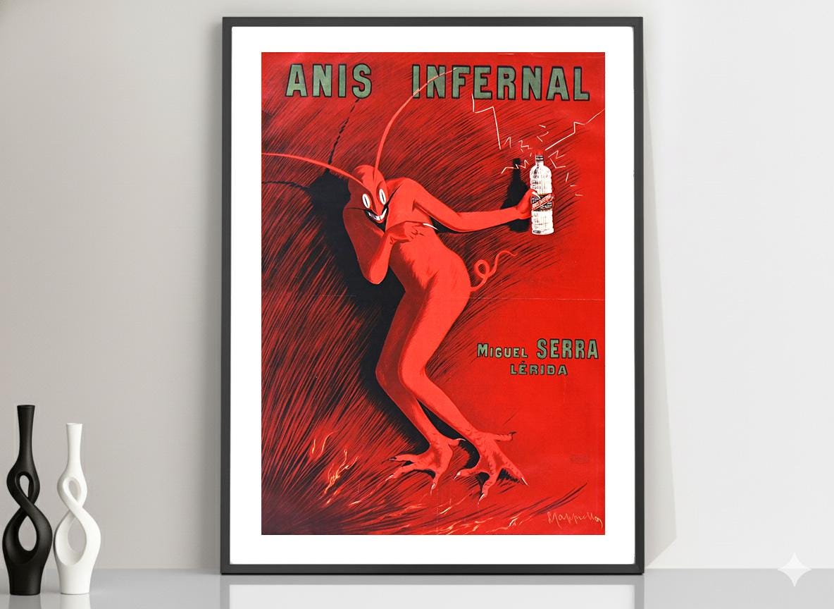 Vintage Anis Infernal Miguel Serra Lerida Advertisement Art Print - Reproduction of a Vintage Drink Artwork, Decorative Purposes Wall Decor - Poster Paper or Canvas Print / Gift Idea
