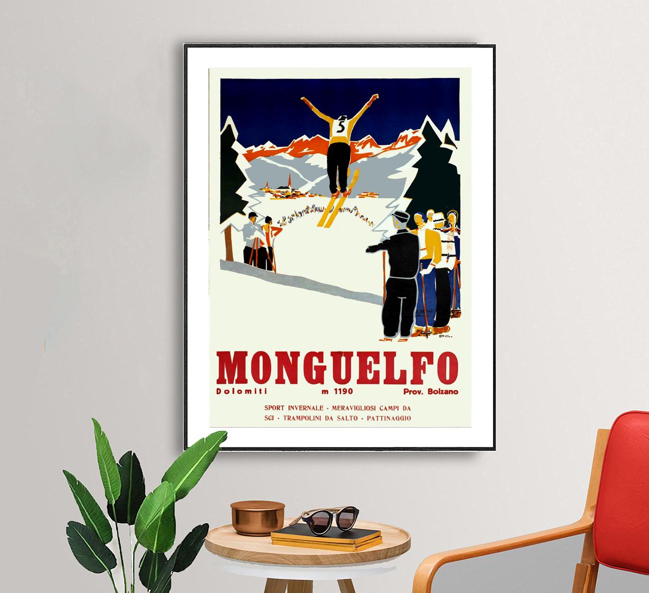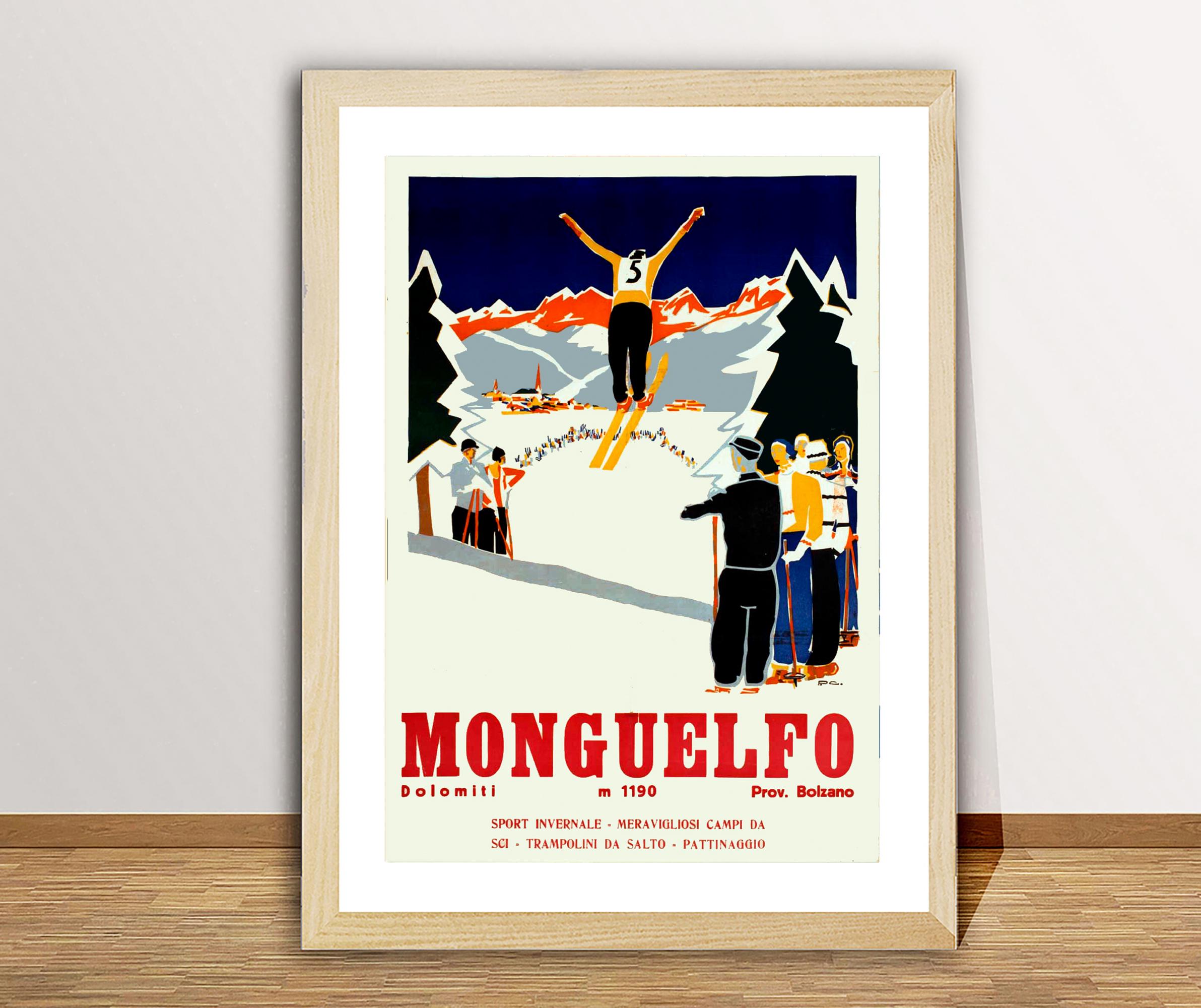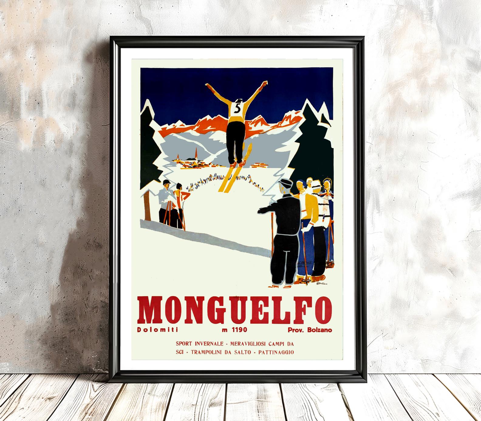 Monguelfo Italy Ski Poster: Vintage Winter Sports Wall Art