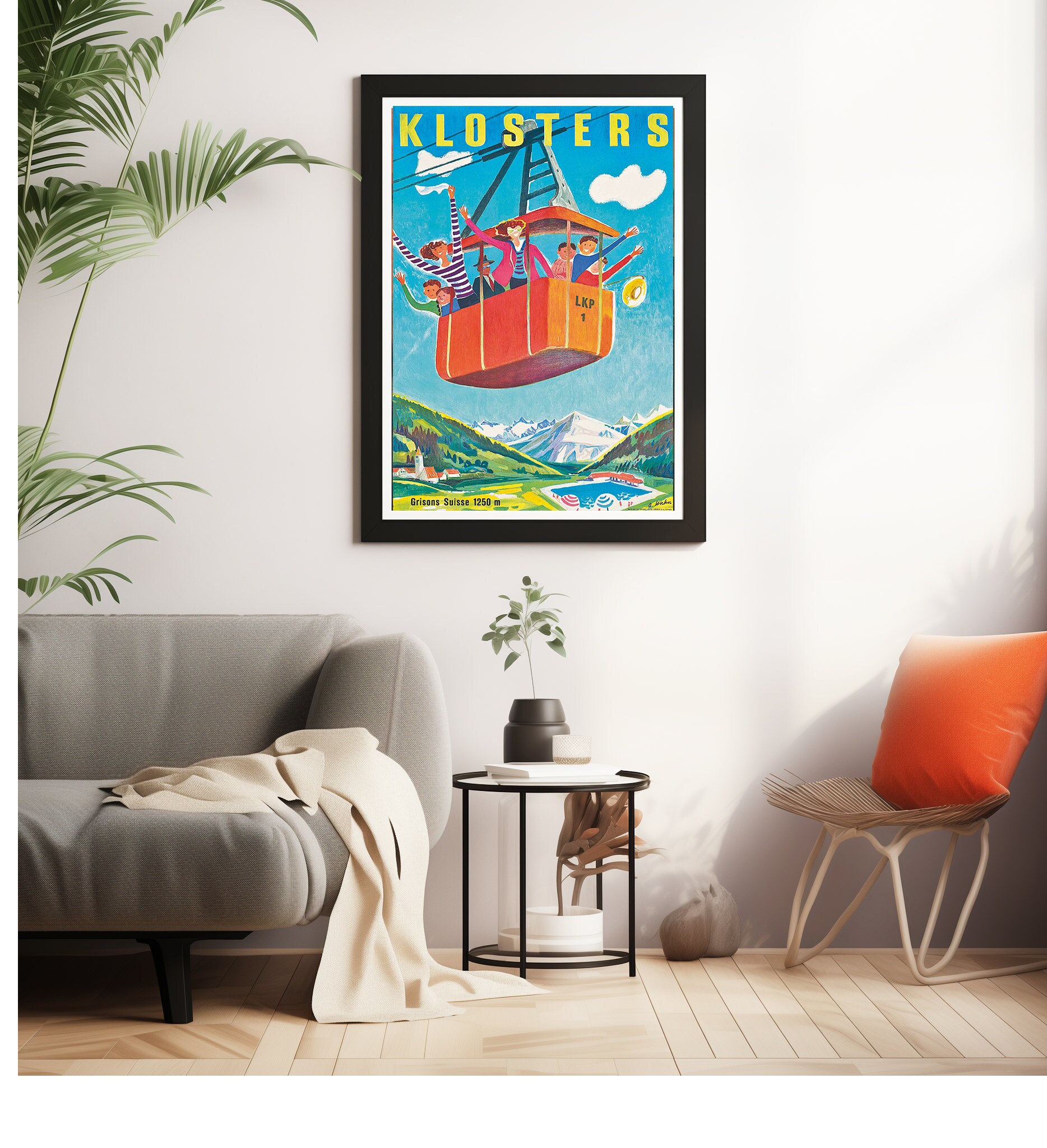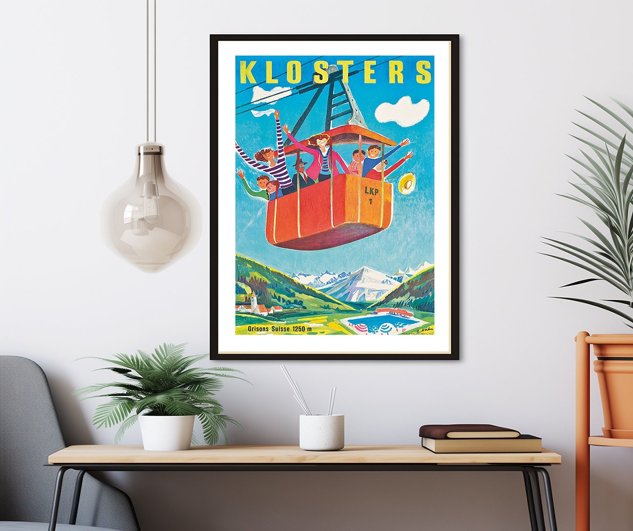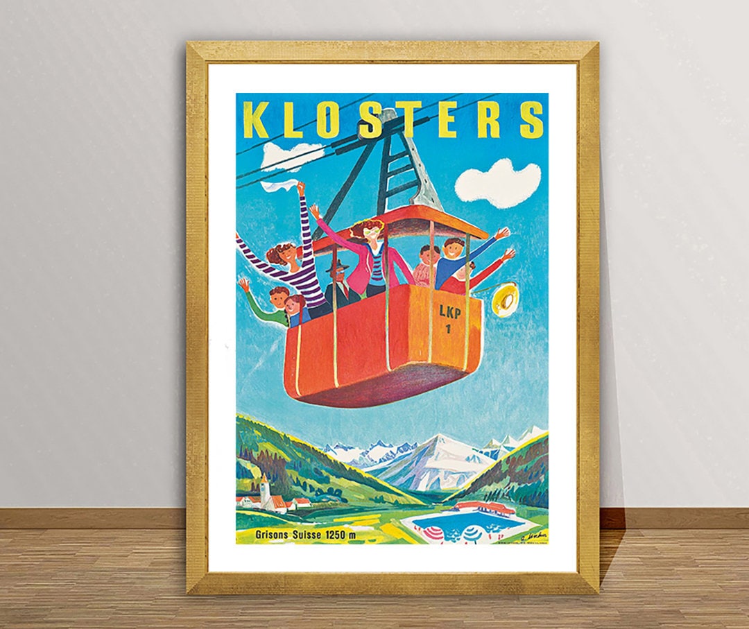 Klosters Grison Suisse Vintage Travel Poster - Skiing Poster, Retro Poster, Gift Idea, Wall Decor