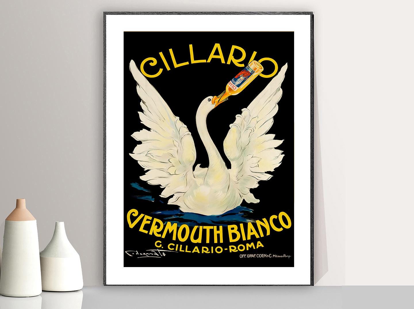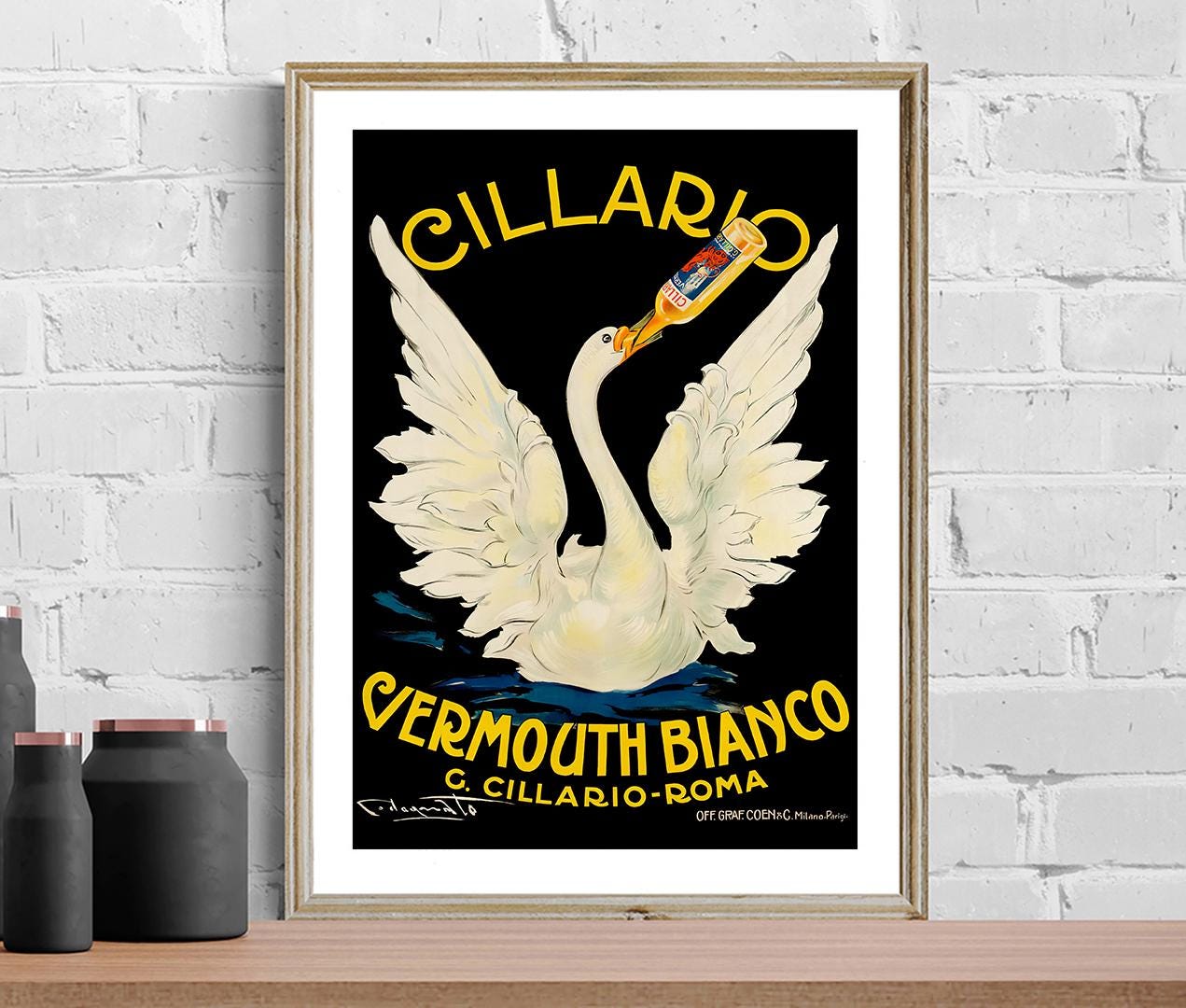 Vintage Italian Vermouth Print: Swan Art Deco Advertisement