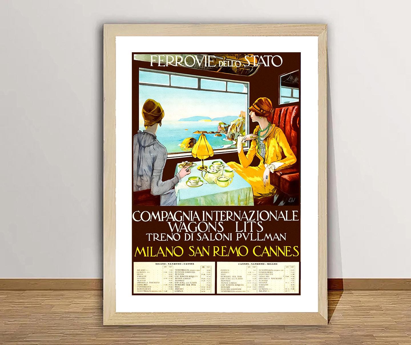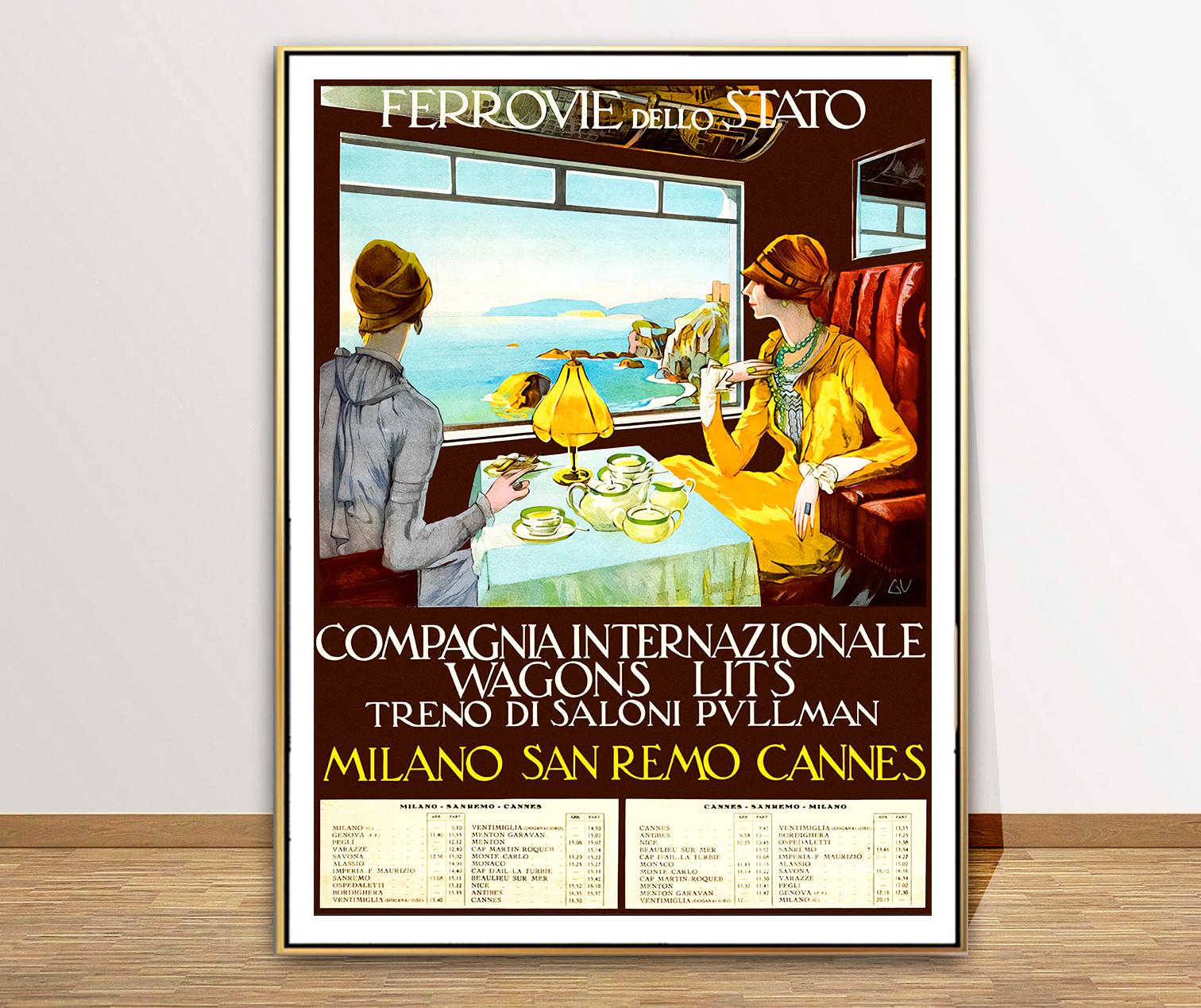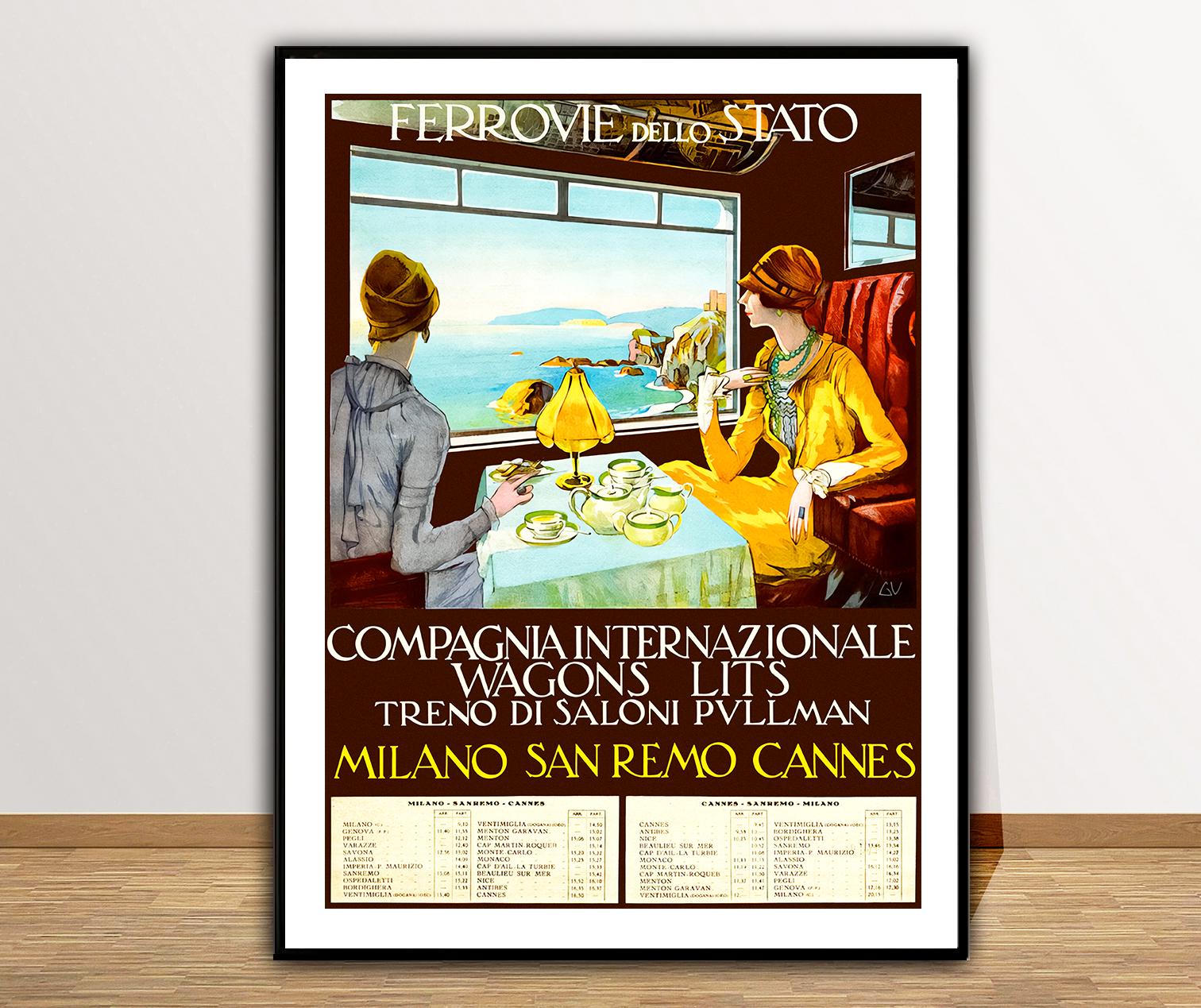 Compagnie Internationale des Wagon Lits, Milano, San Remo, Cannes Vintage Travel Poster - Poster Paper or Canvas Print / Gift Idea
