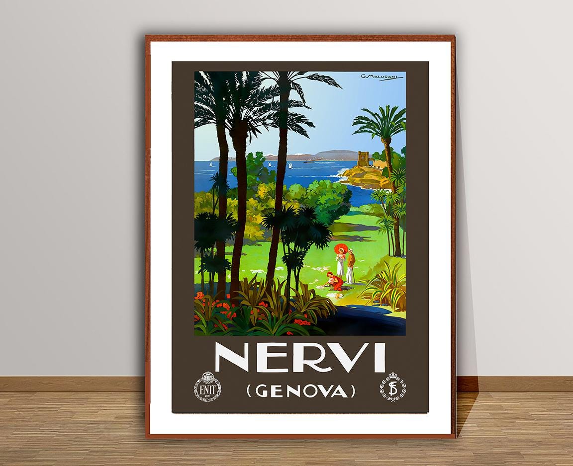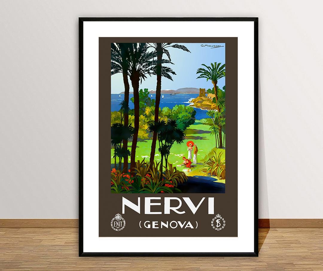 Nervi, Genova, Italy Vintage Travel Poster - Poster Paper or Canvas Print / Gift Idea / Wall Decor