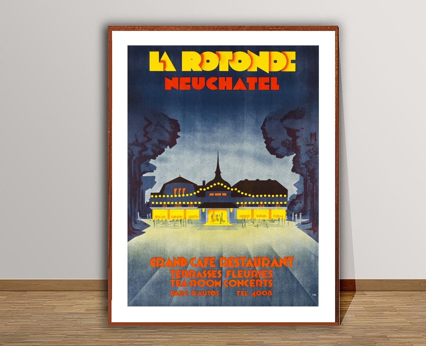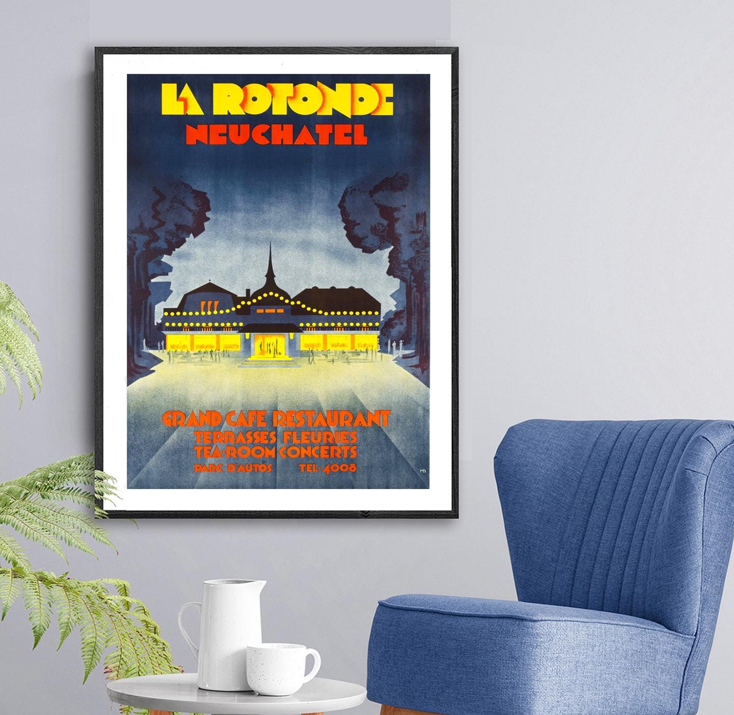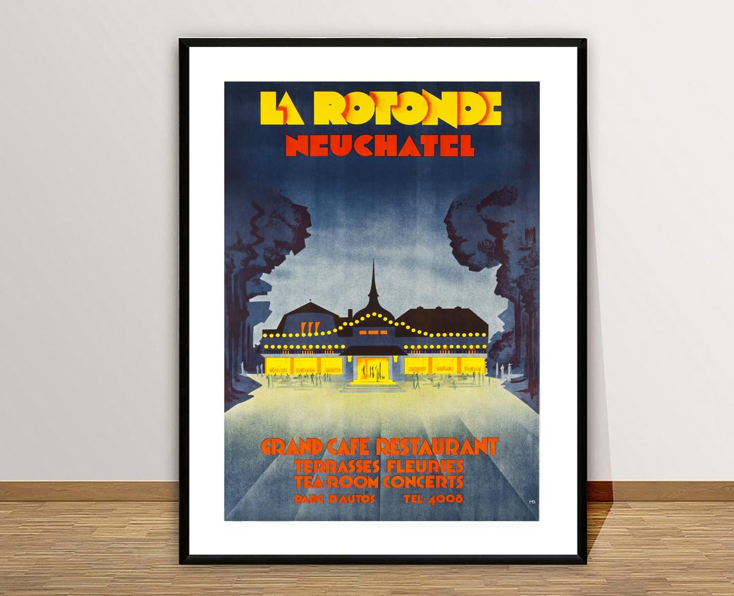 La Rotonde Neuchatel Vintage Travel Poster: Suisse Grand Cafe Print