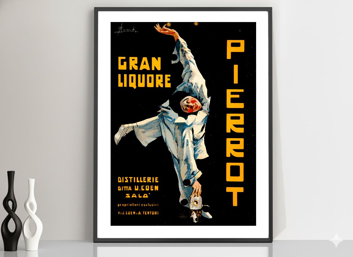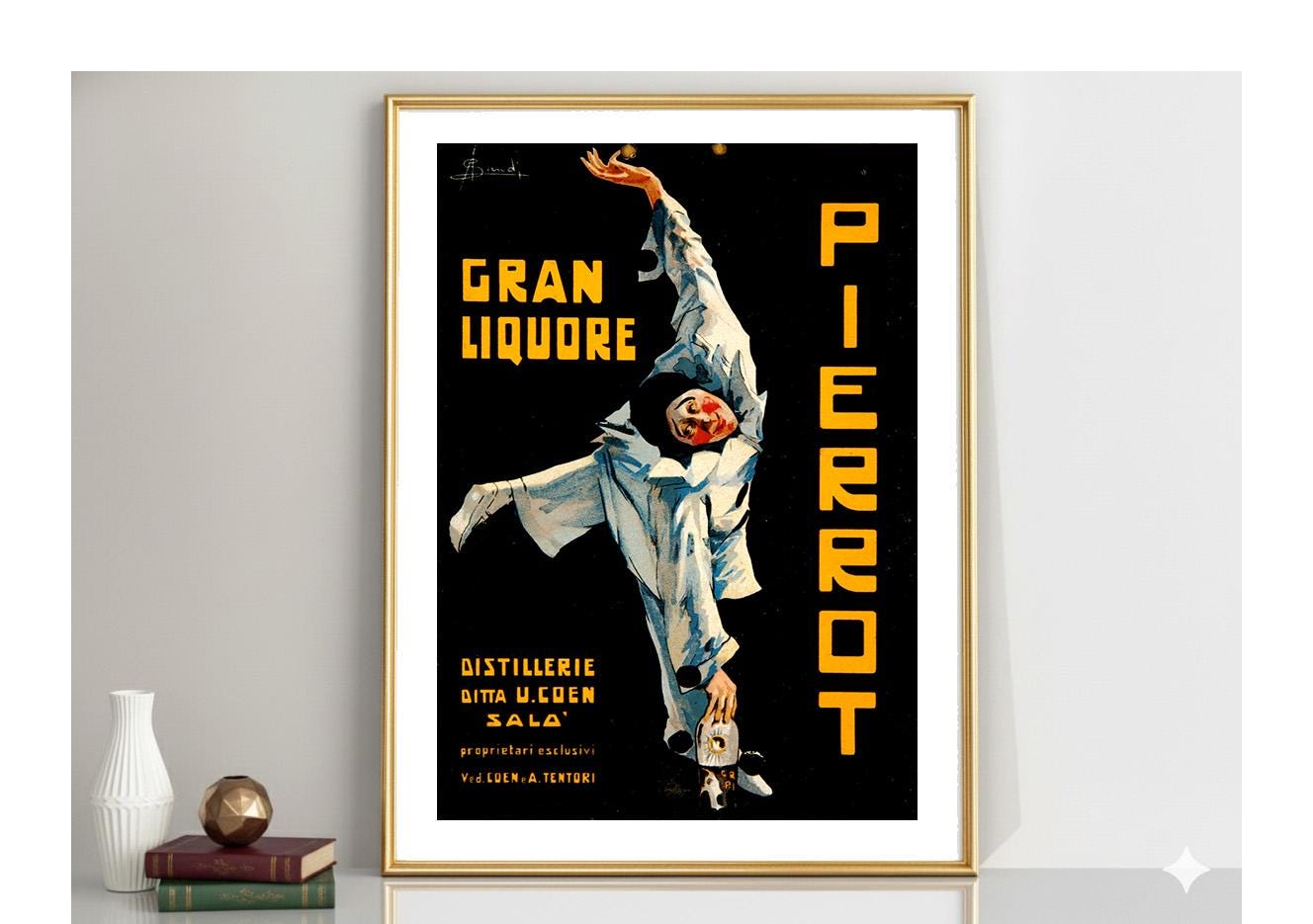 Vintage Gran Liquore Pierrot Advertisement Art Print - Reproduction of a Vintage Artwork, Decorative Purposes Wall Decor - Poster Paper or Canvas Print / Gift Idea