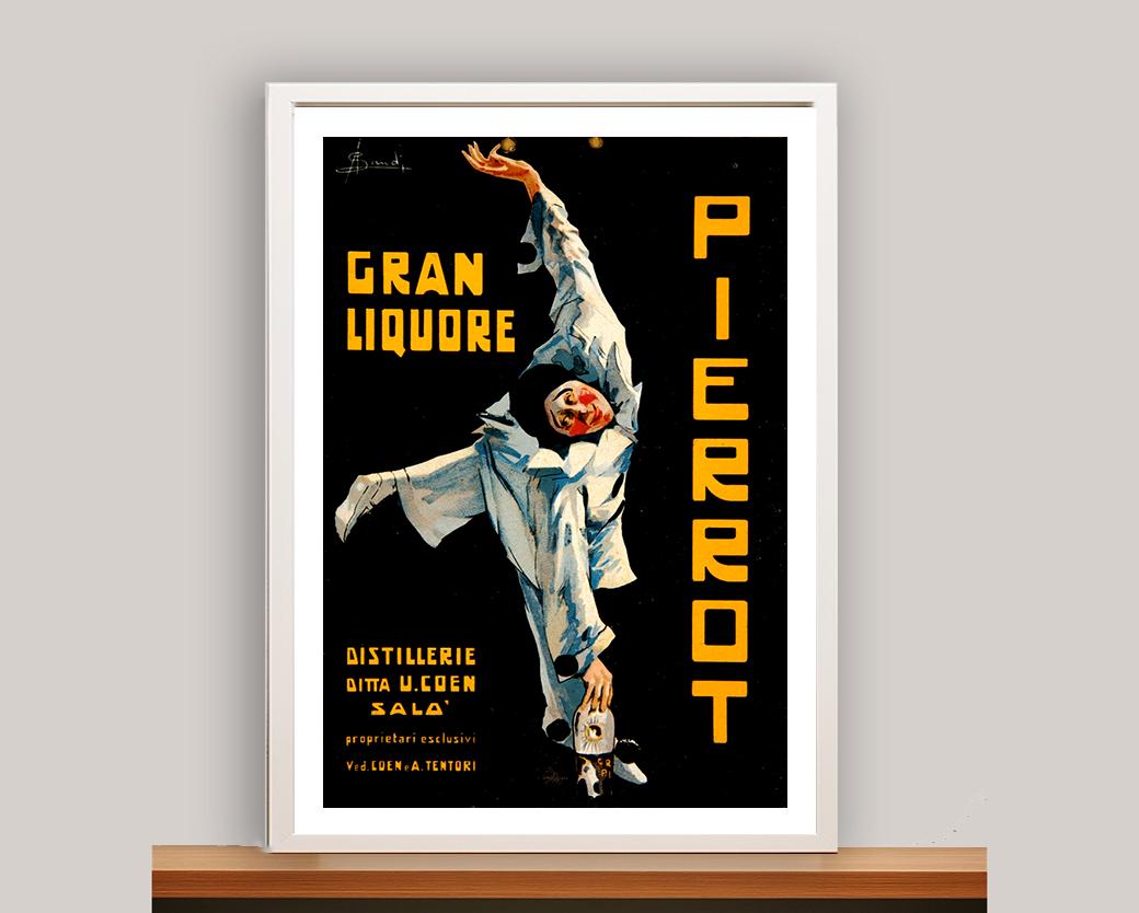 Vintage Gran Liquore Pierrot Advertisement Art Print - Reproduction of a Vintage Artwork, Decorative Purposes Wall Decor