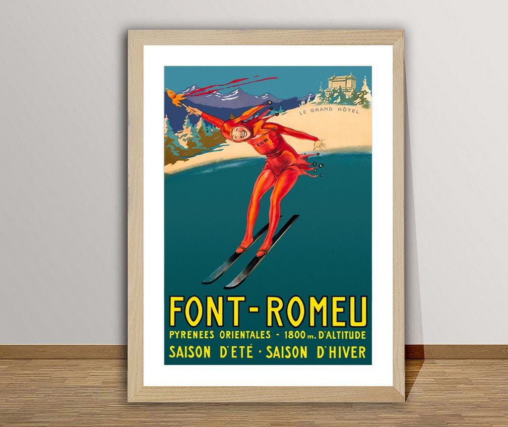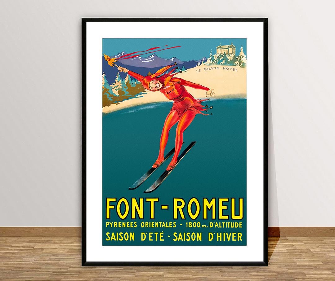 Font Romeu Pyrenees Orientales, France Vintage Travel Poster - Poster Paper or Canvas Print / Gift Idea