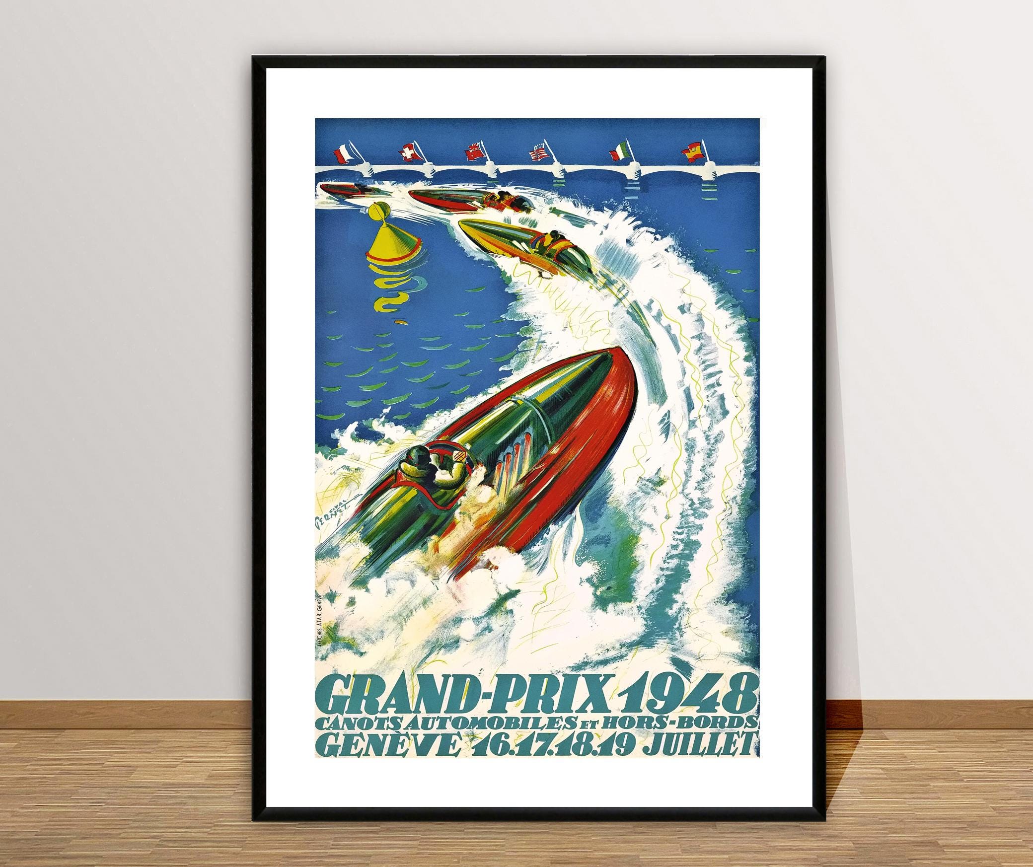 Vintage Grand Prix 1948 Canots Automobiles et Hors Bords Advertisement Art Print - Reproduction of a Vintage Artwork, Decorative Purposes Wall Decor / Gift Idea
