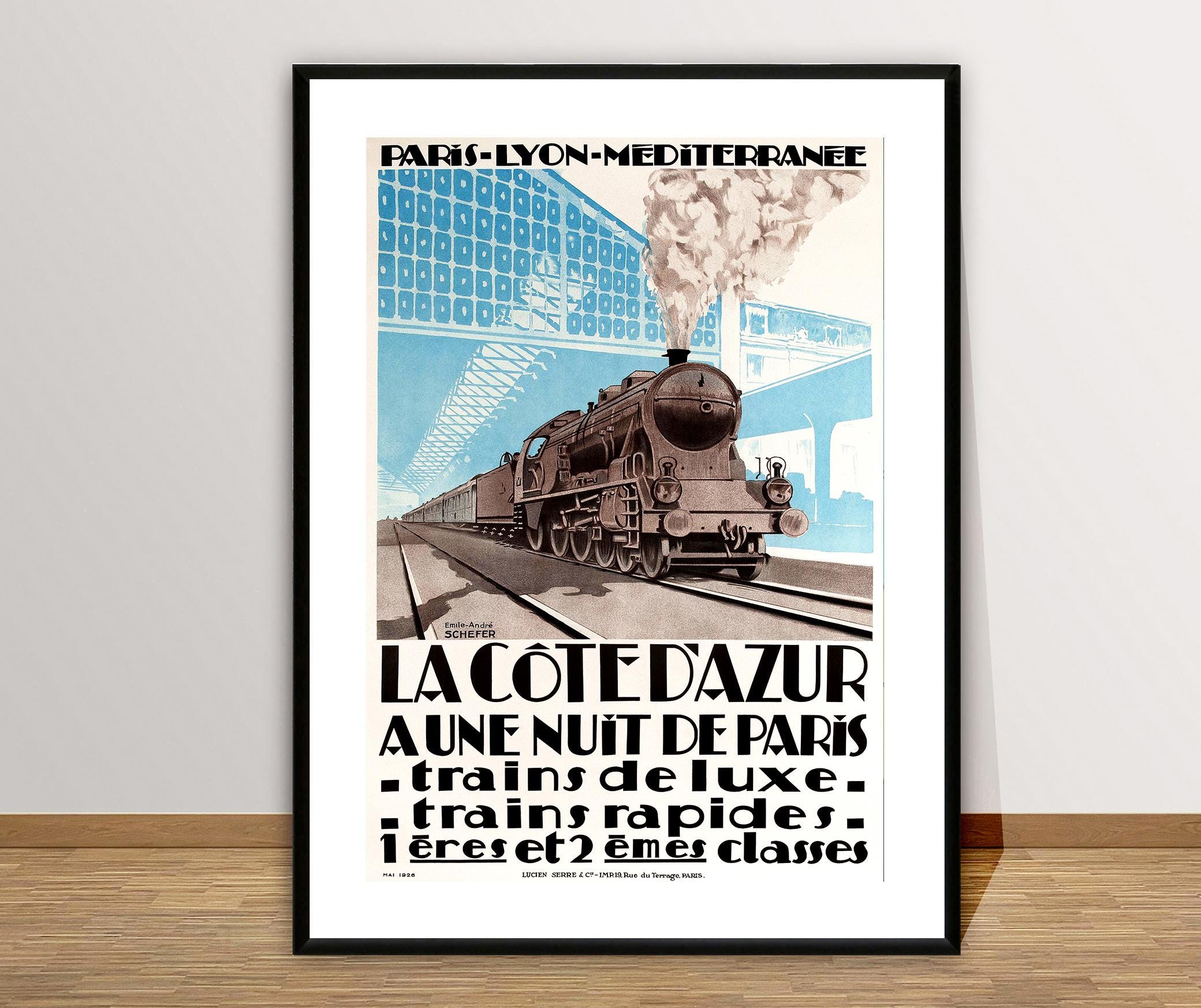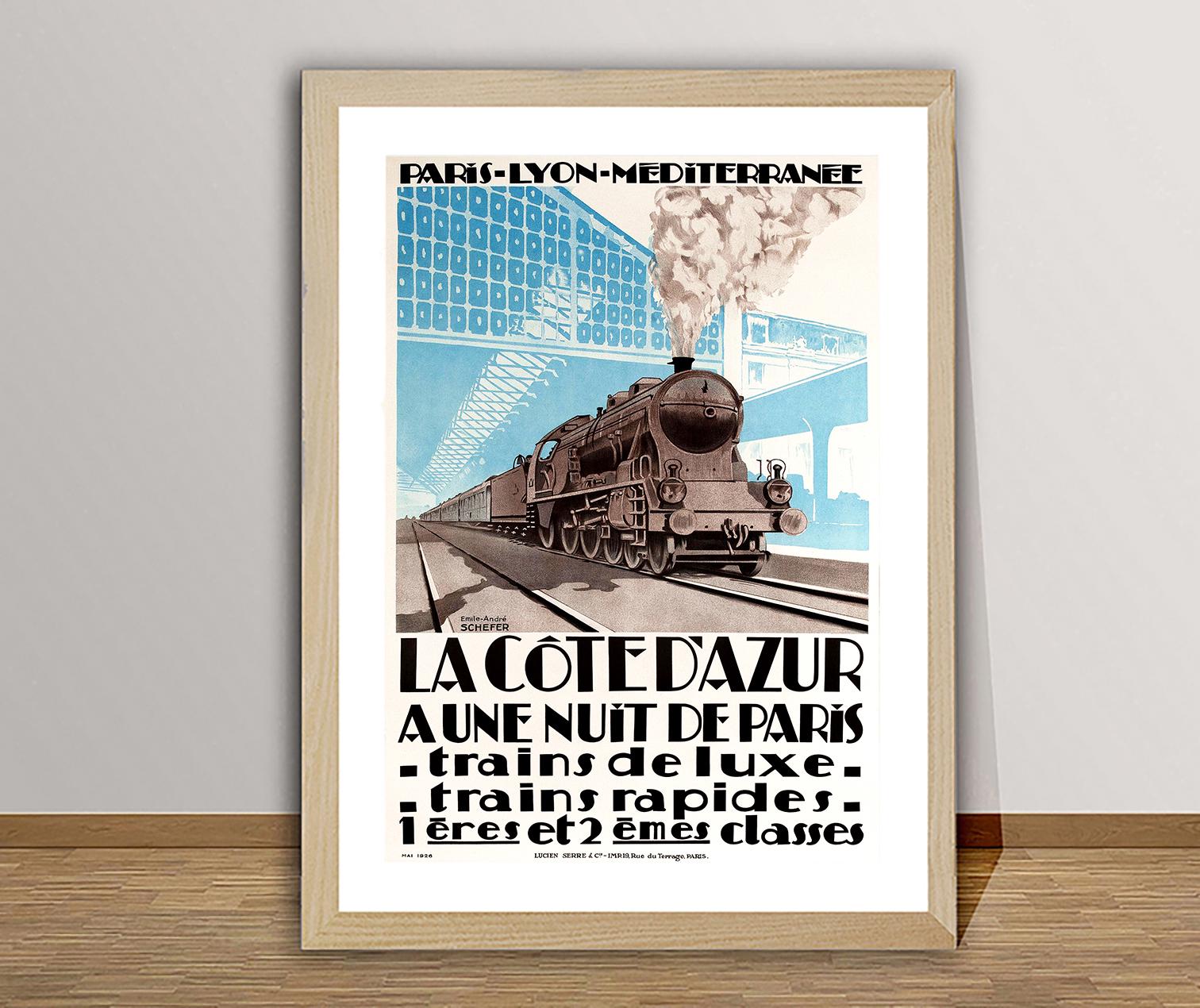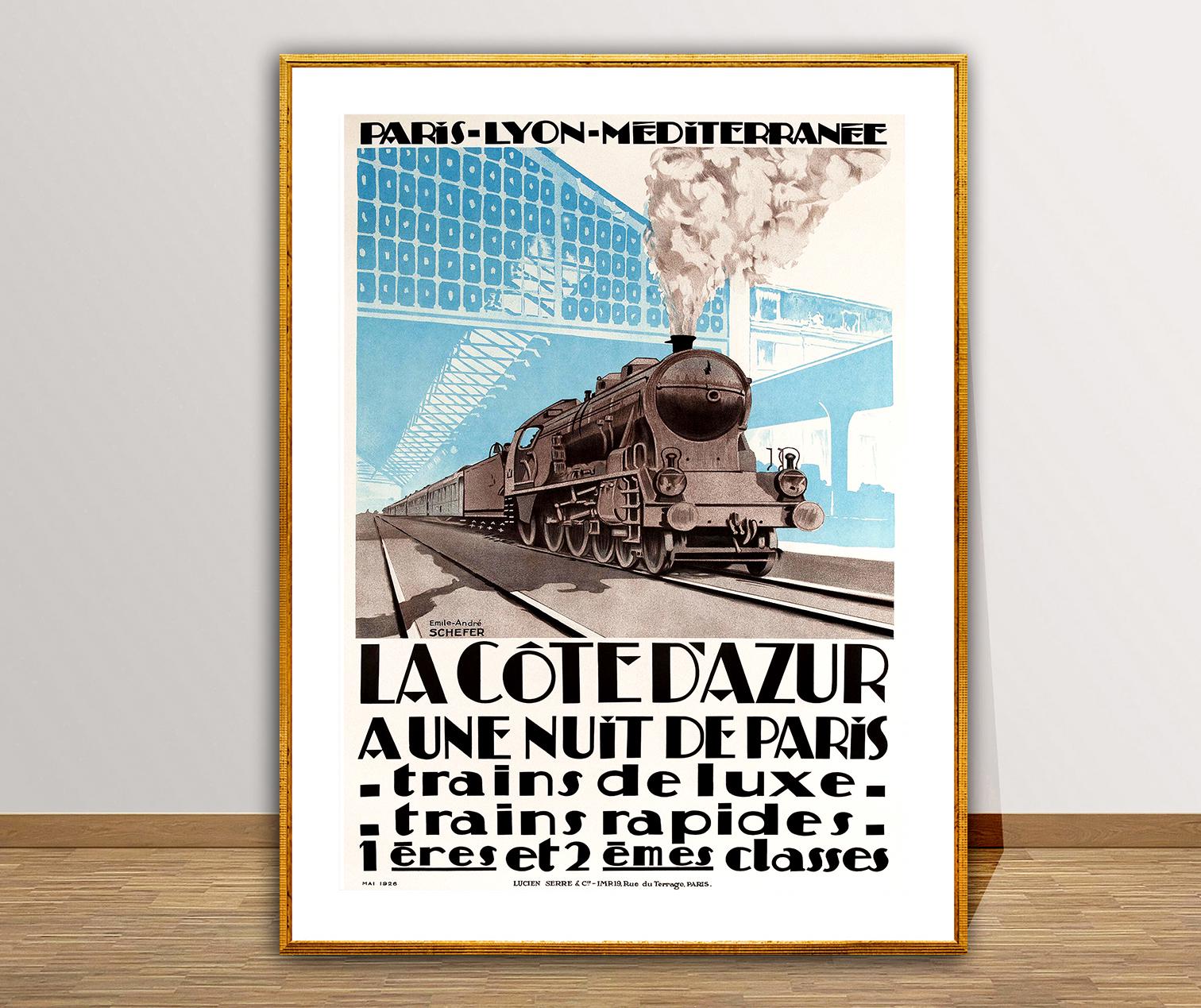 La Cote d'Azur a Une Nuit de Paris, Trains de Luxe Vintage Travel Poster - Poster Paper or Canvas Print / Gift Idea / Wall Decor