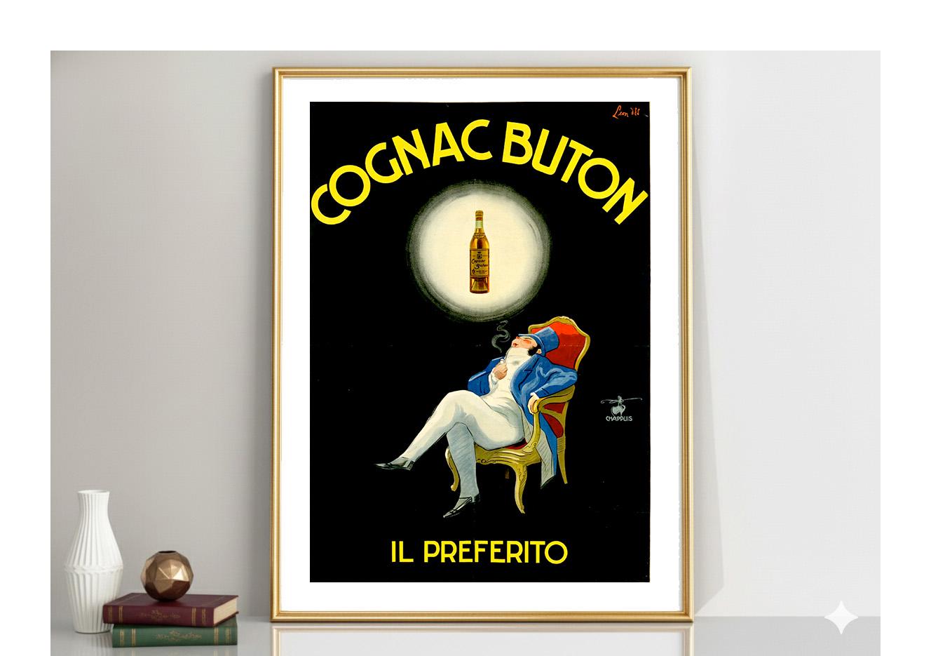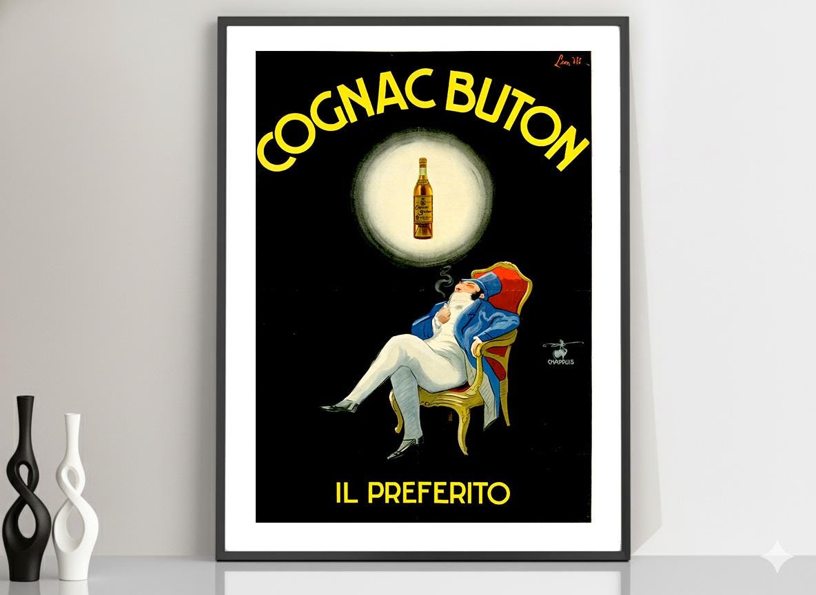 Vintage Cognac Buton Advertisement Art Print - Reproduction of a Vintage Artwork, Decorative Purposes Wall Decor- Poster Paper or Canvas Print / Gift Idea