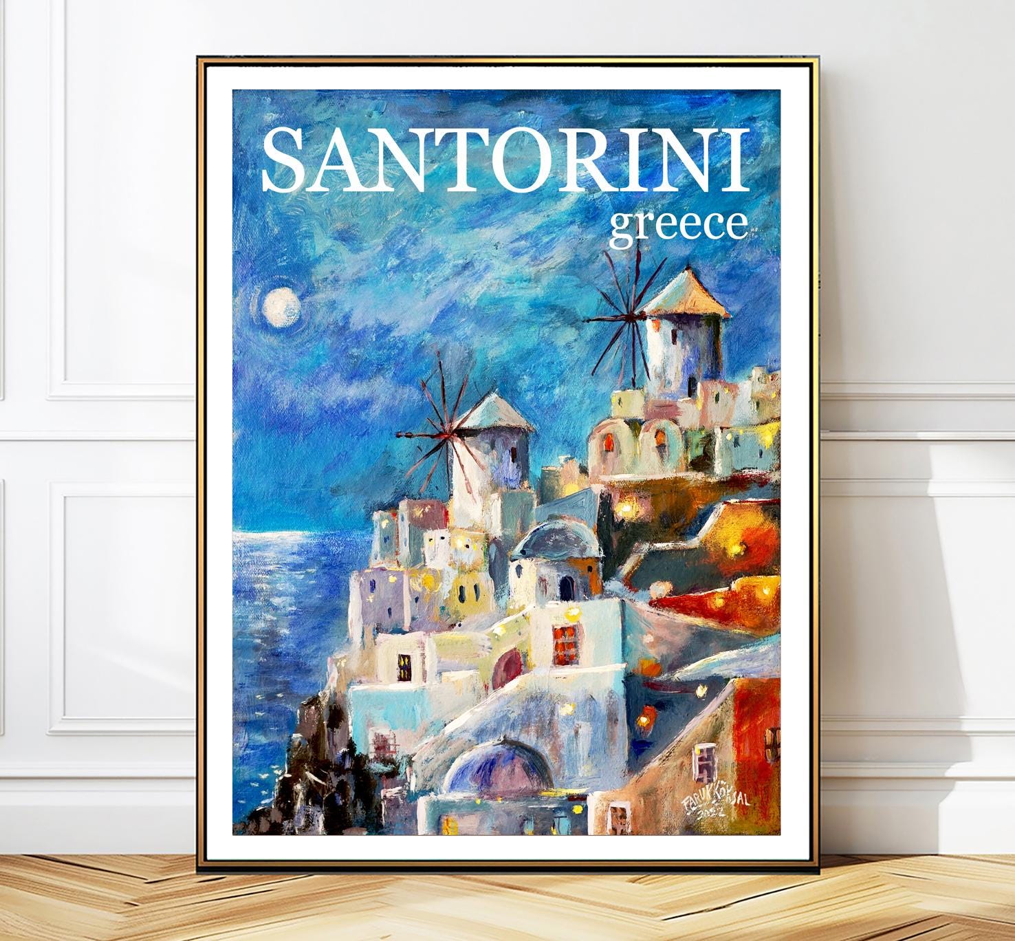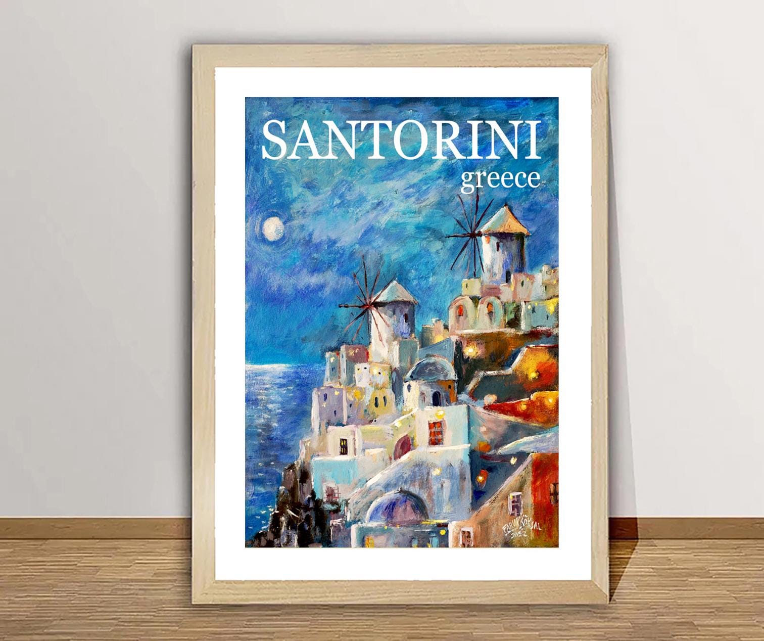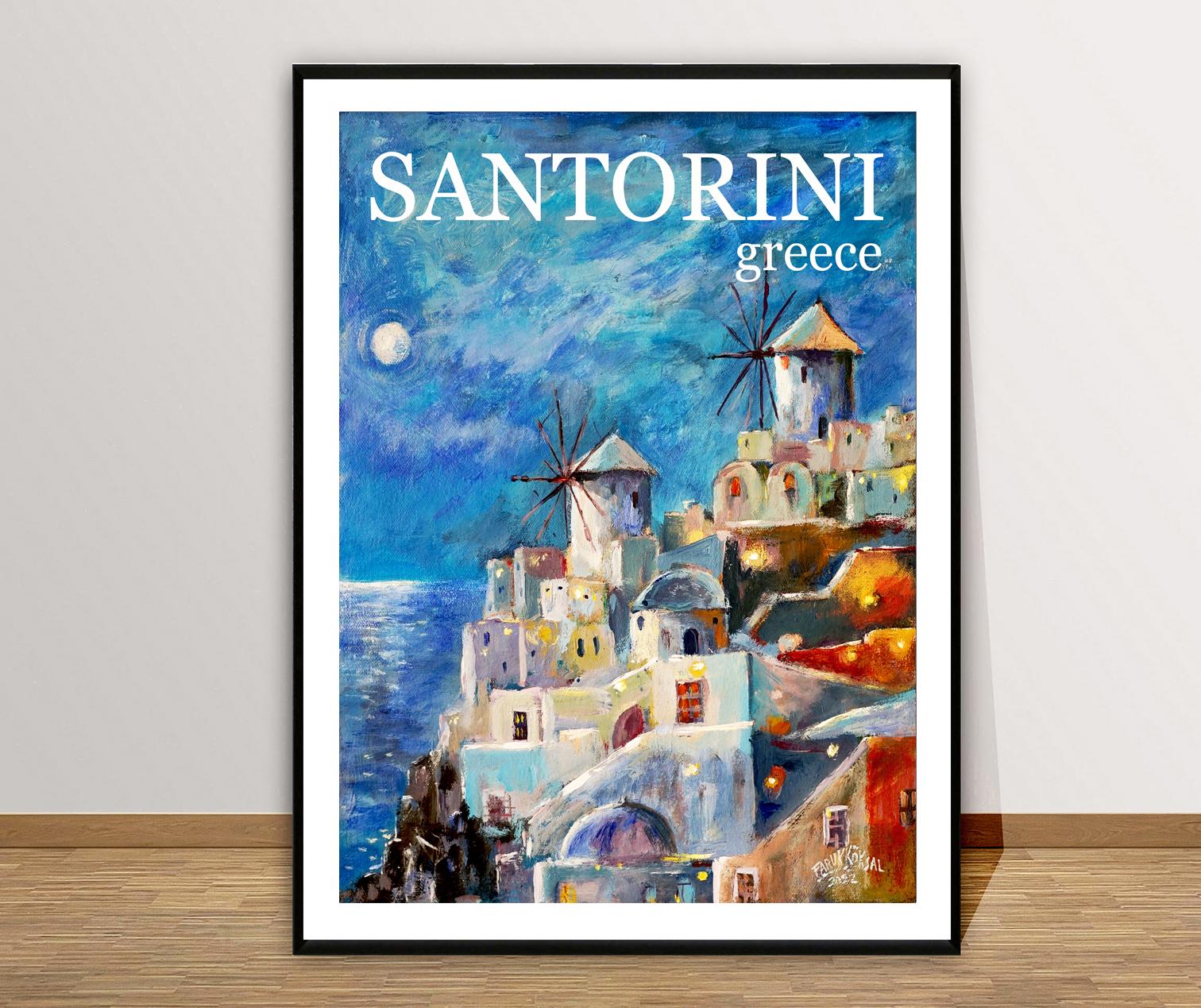 Santorini Greece Vintage Travel Poster: Wall Art Print