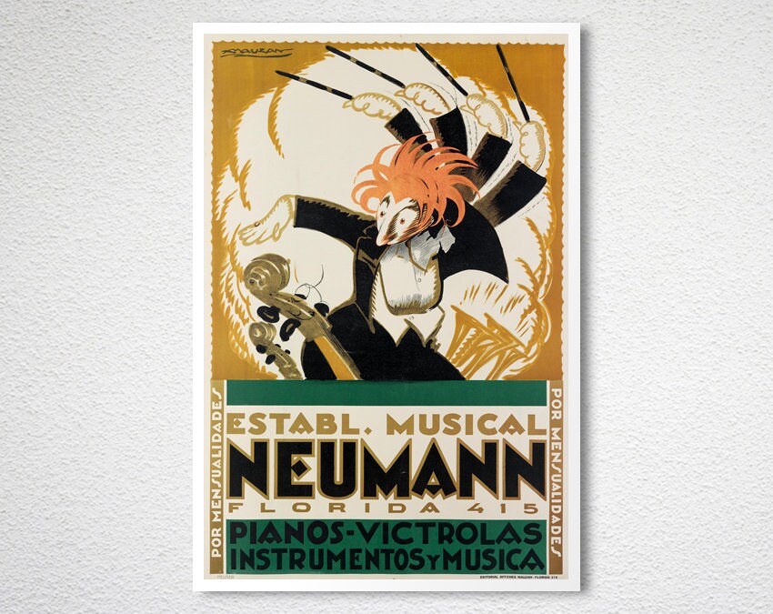 Establ Musical Neumann Florida Pianos Victrolas Instrumentos y Musica Vintage Print - Poster Paper or Canvas Print / Gift Idea