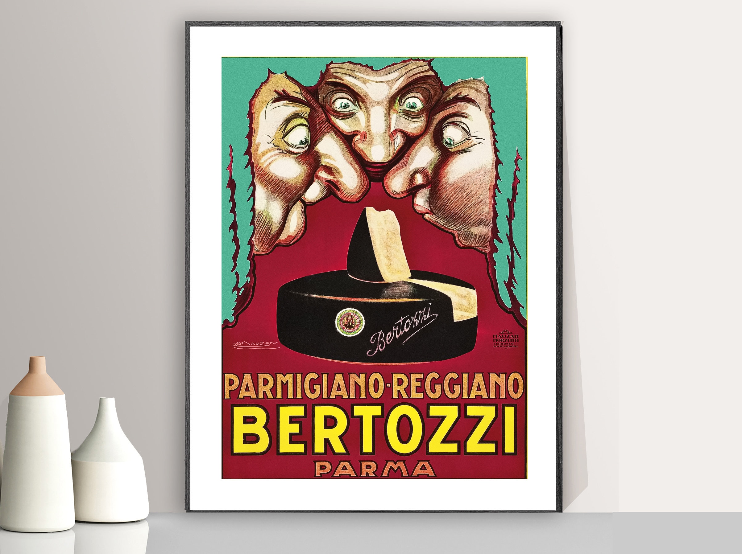 Parmigiano Reggiano Bertozzi Parma Vintage Food&Drink Poster - Poster Paper, Canvas Print / Gift Idea / Wall Decor