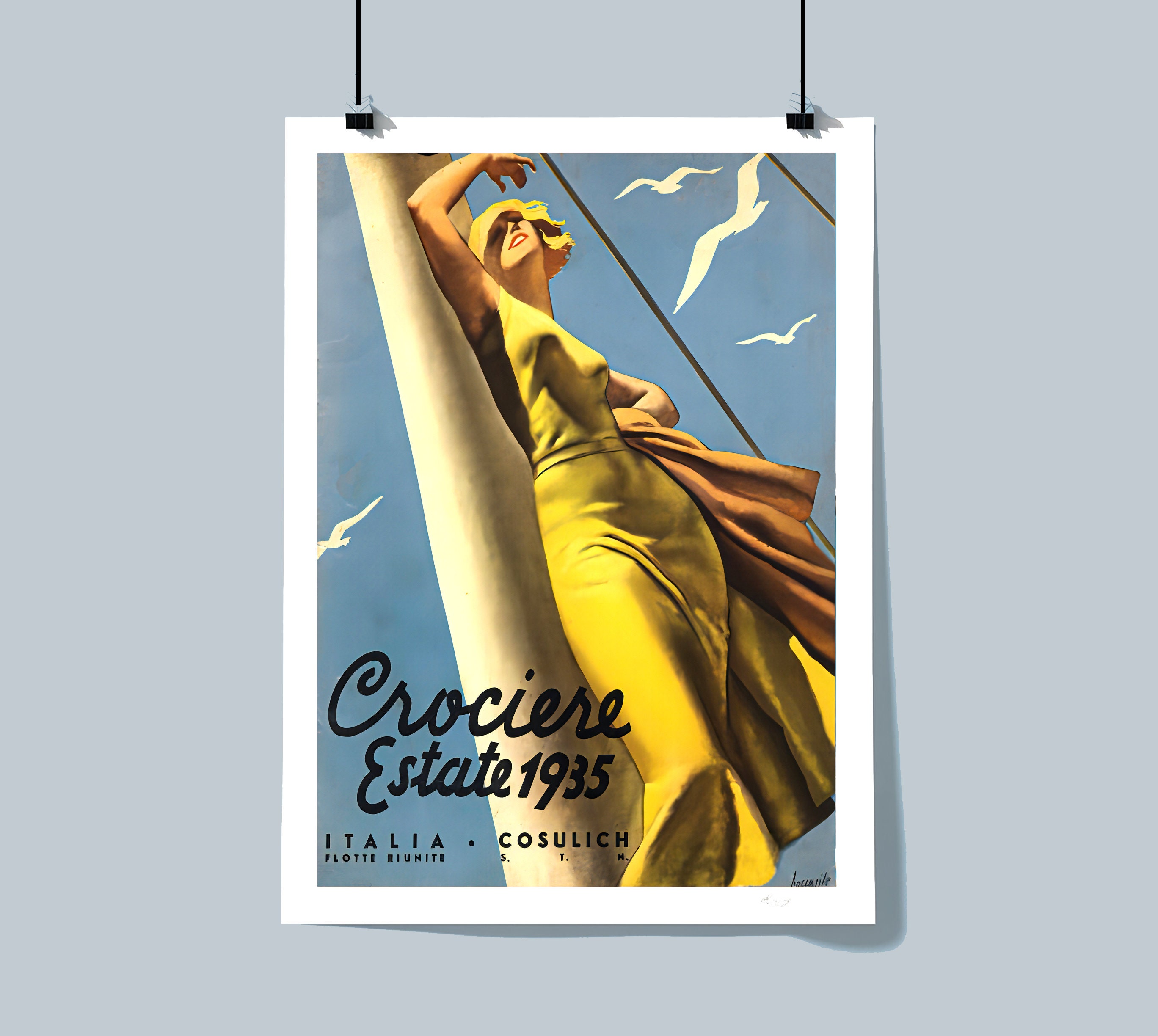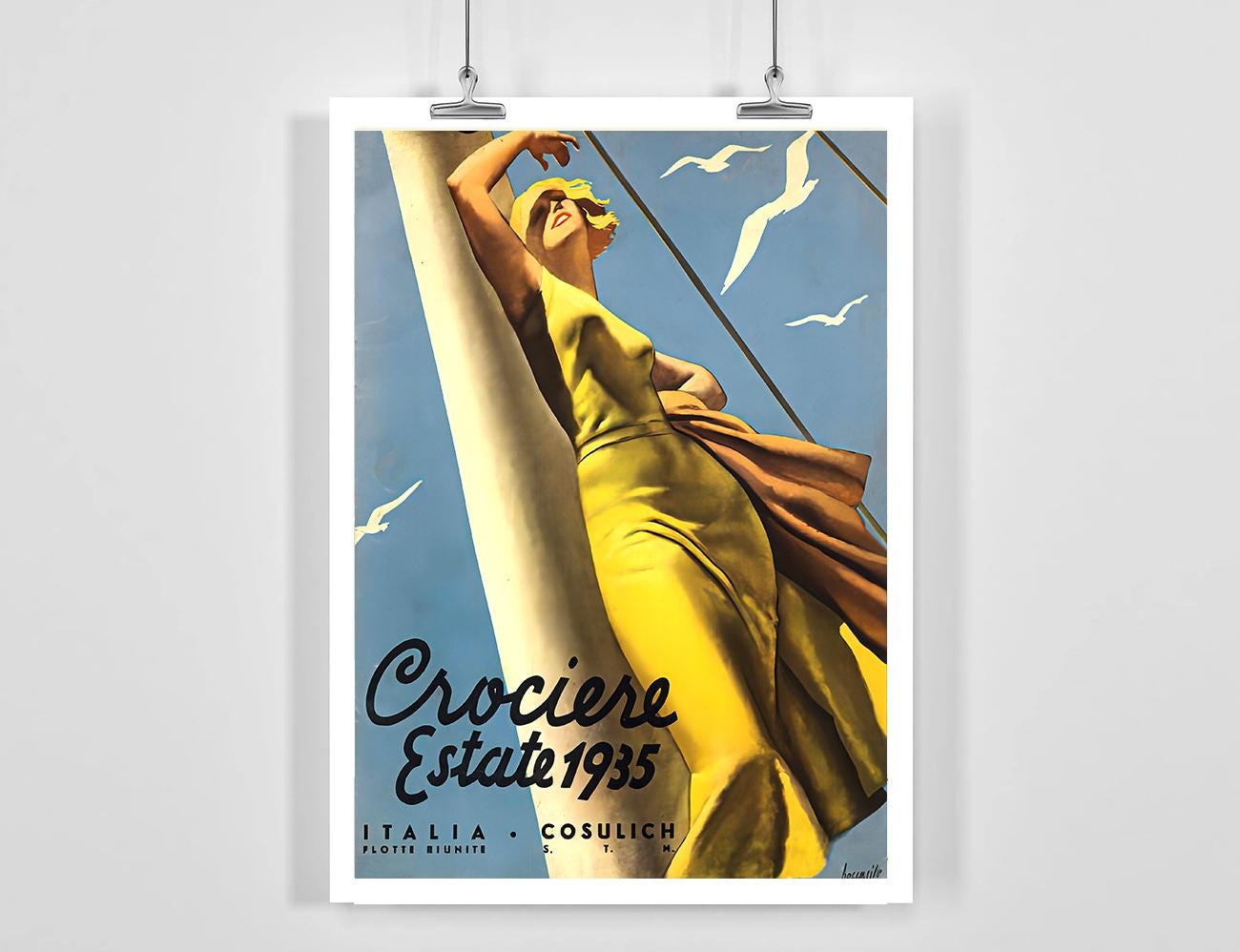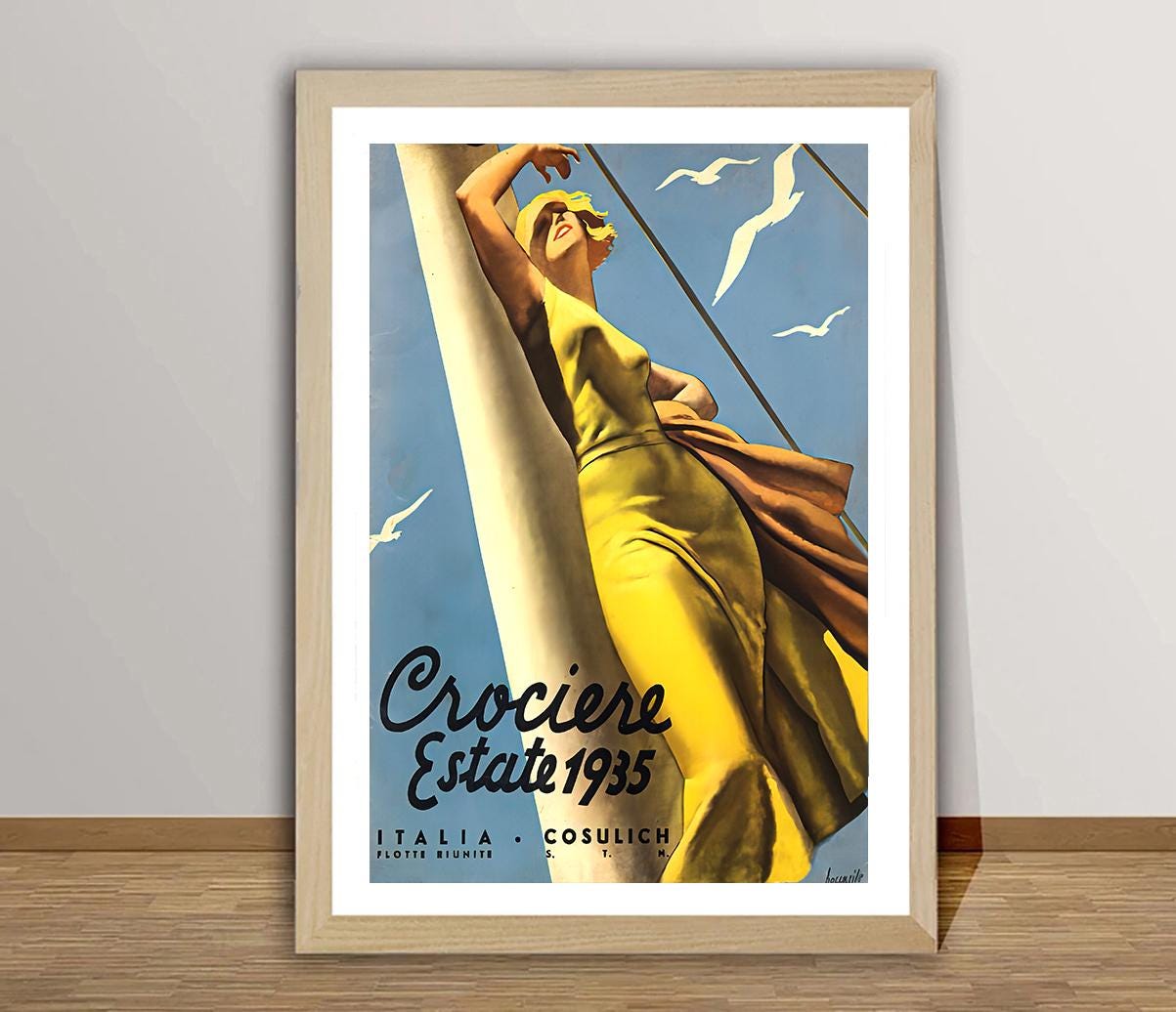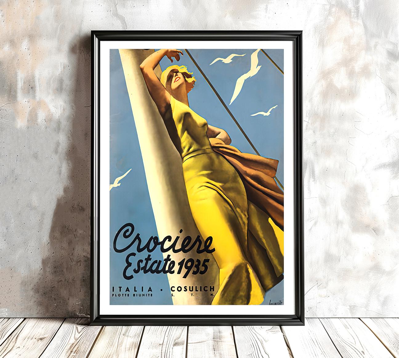 Crociere Estate 1935, Italia Cosulich (Summer Cruises) Vintage Travel Poster - Poster Paper or Canvas Print