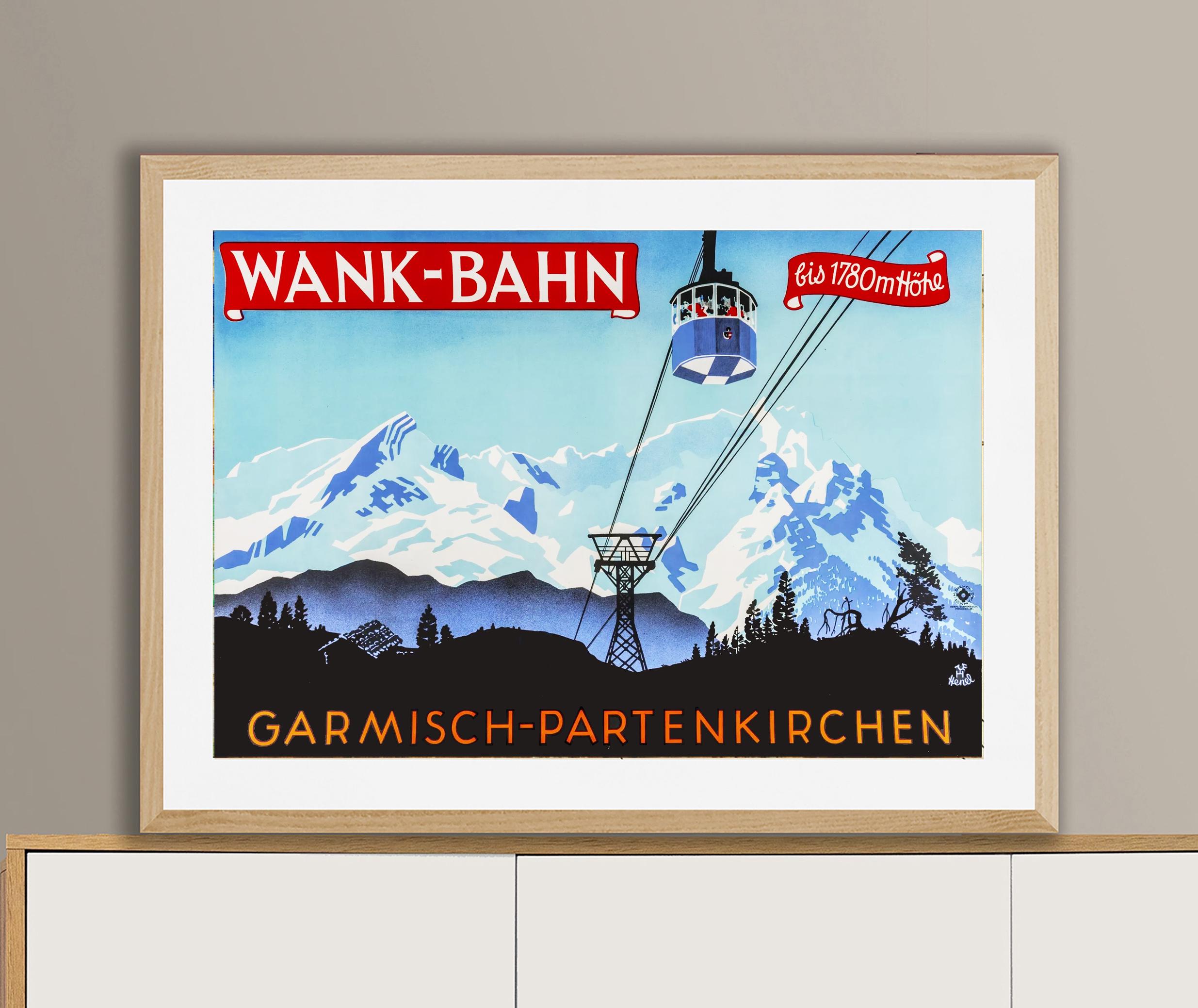 Vintage Wank Bahn Travel Poster: Garmisch-Partenkirchen Ski Paradise