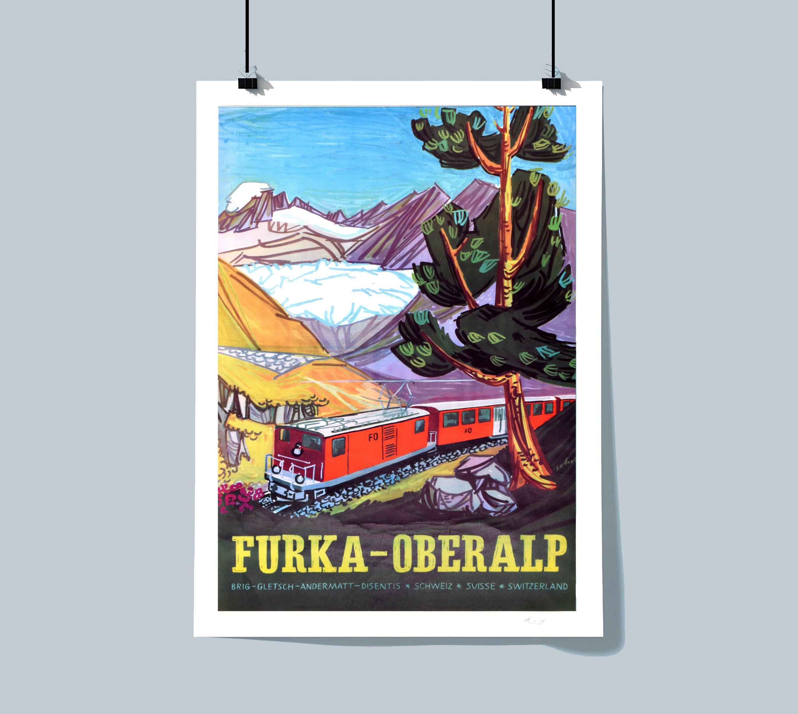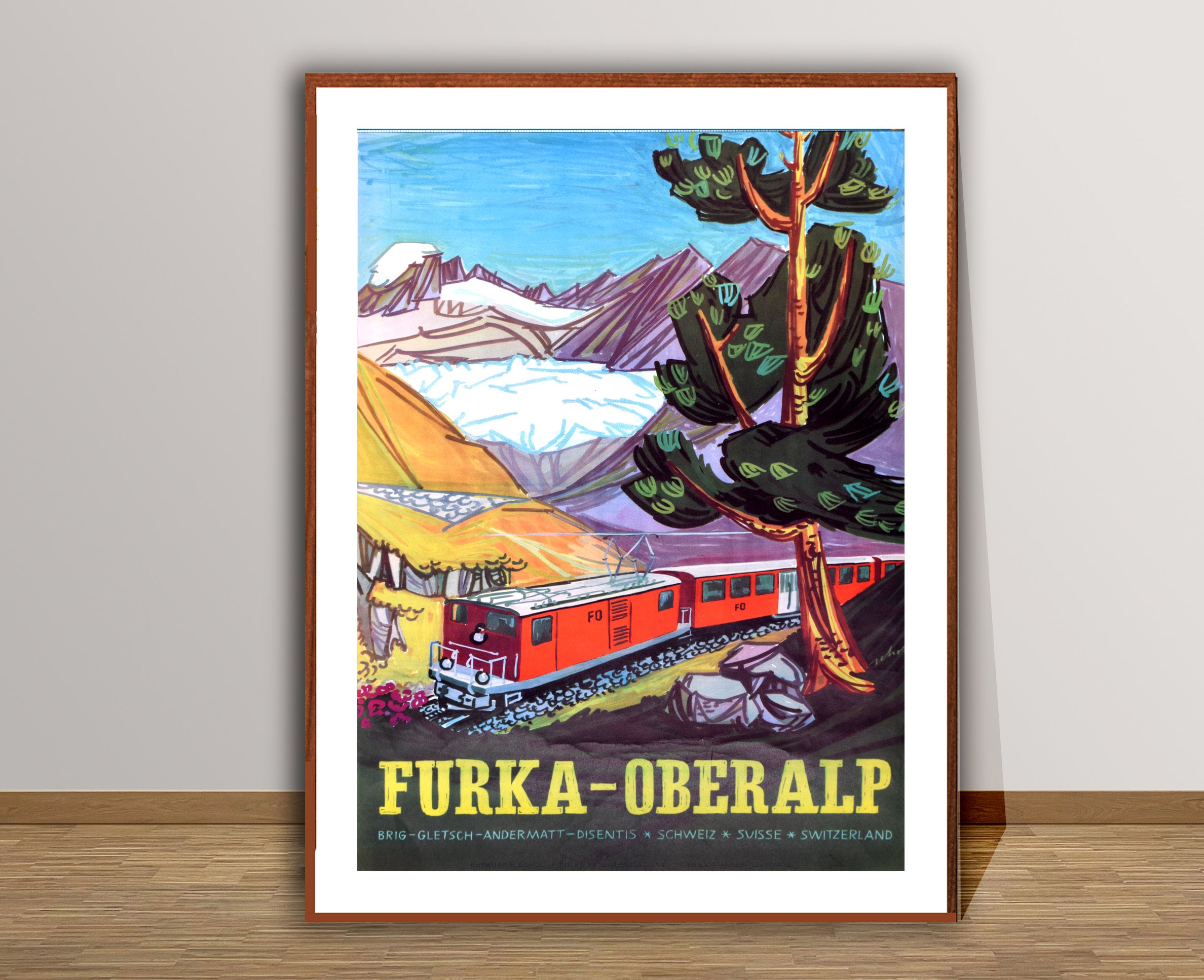 Vintage Furka Oberalp Railway Poster: Swiss Travel Art