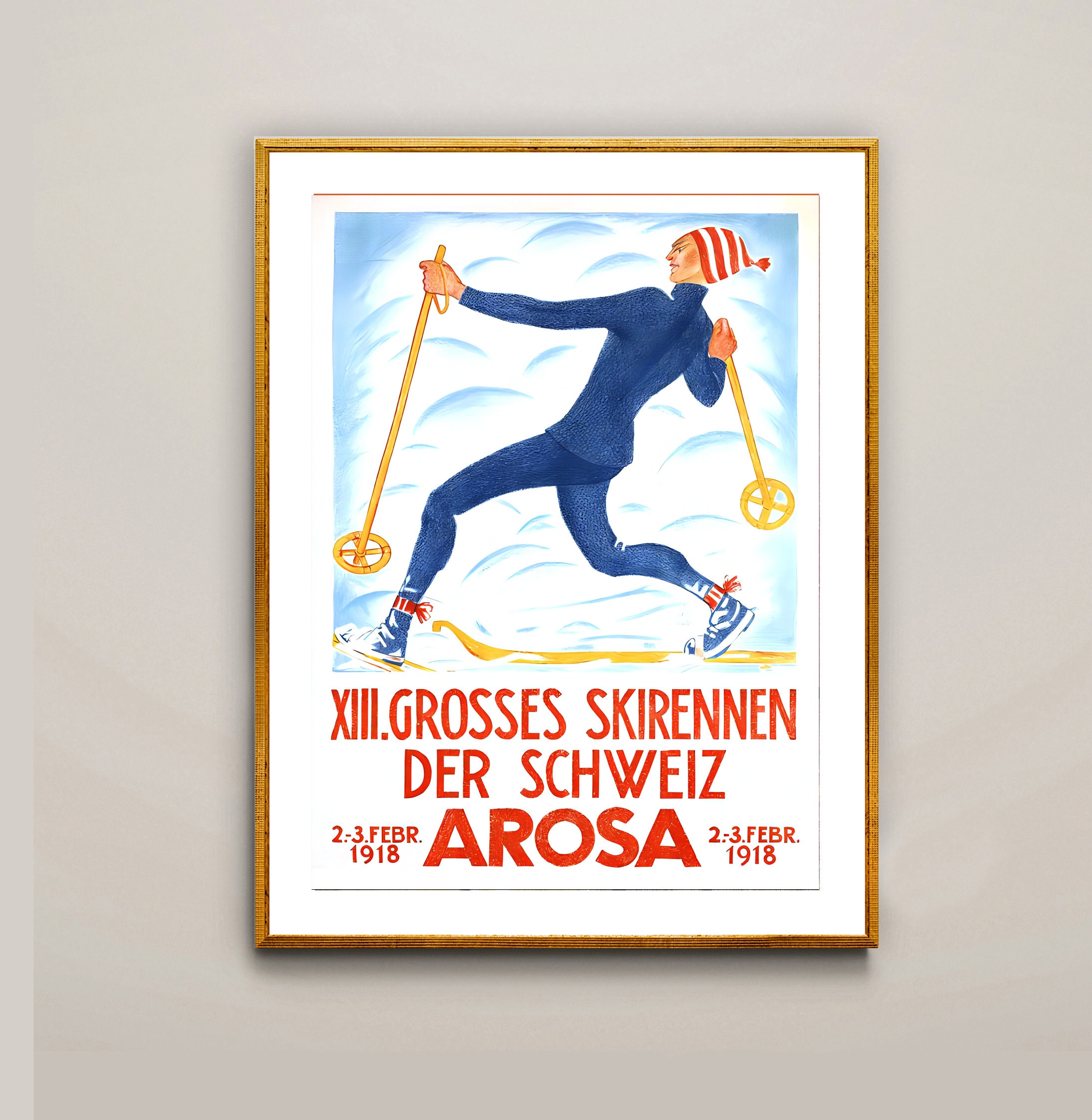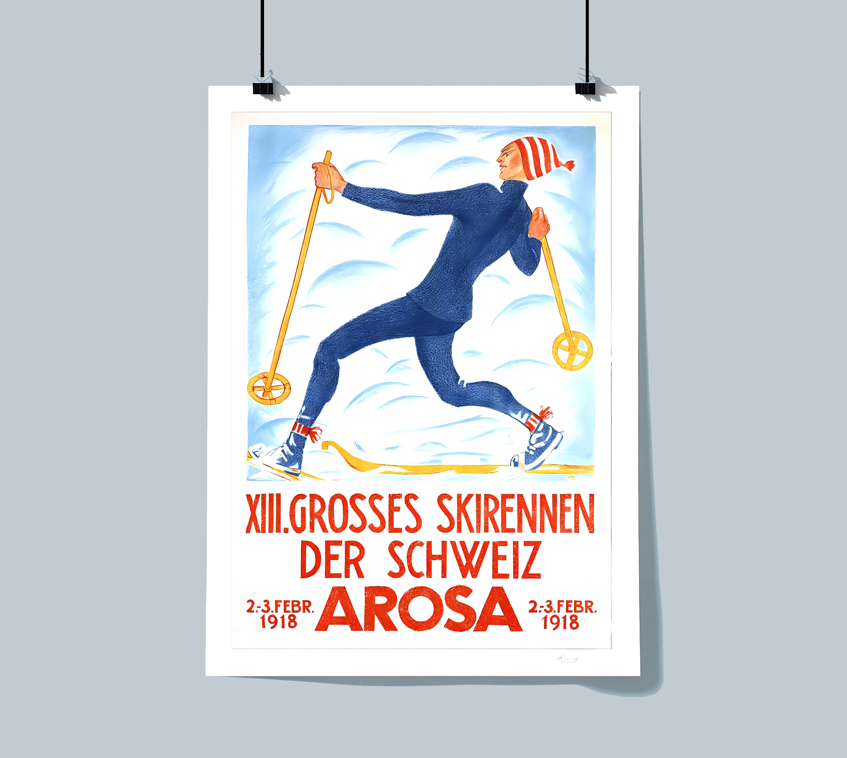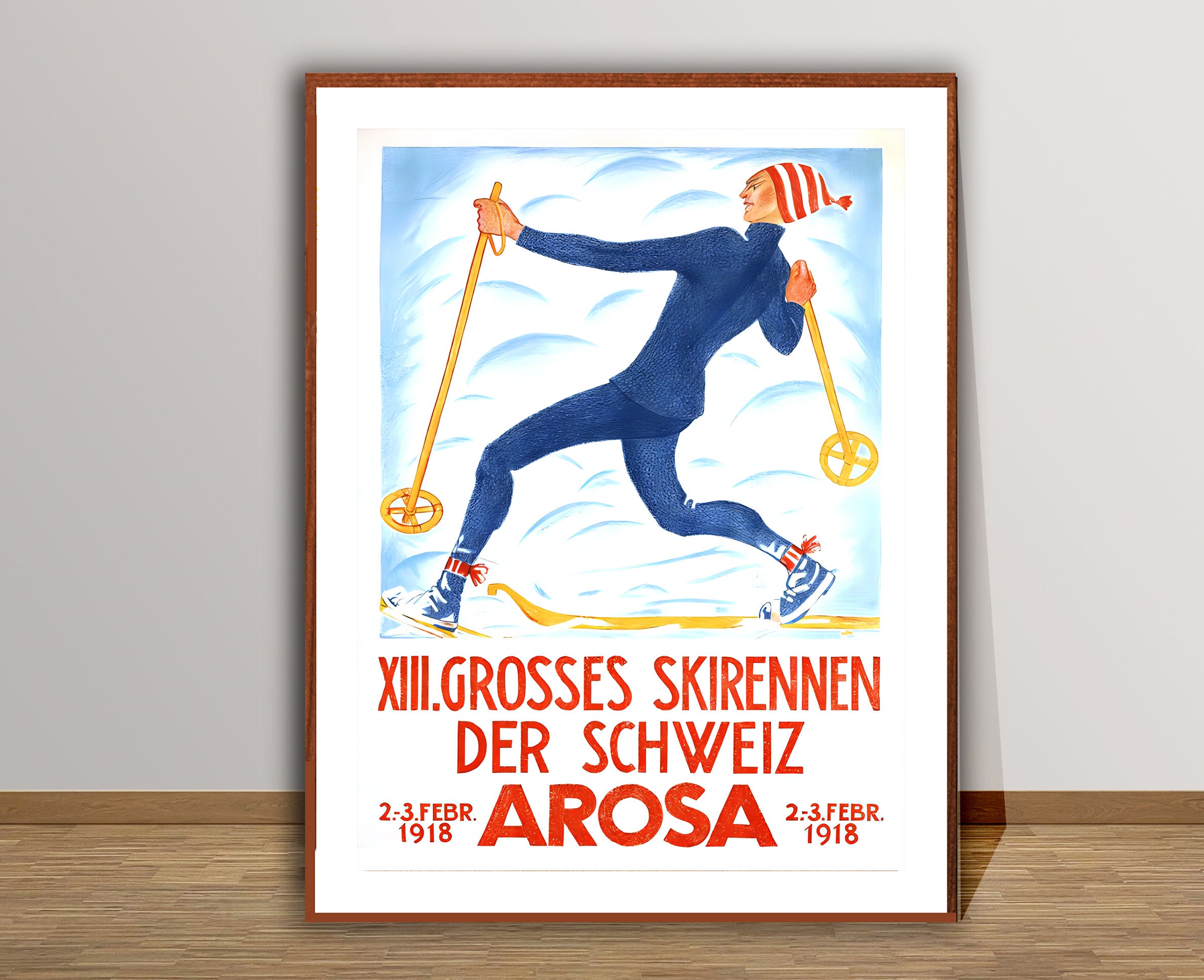 XIII. Grosses Skirennen der Schweiz Arosa, Suisse Vintage Ski Poster - Poster Paper or Canvas Print / Gift Idea