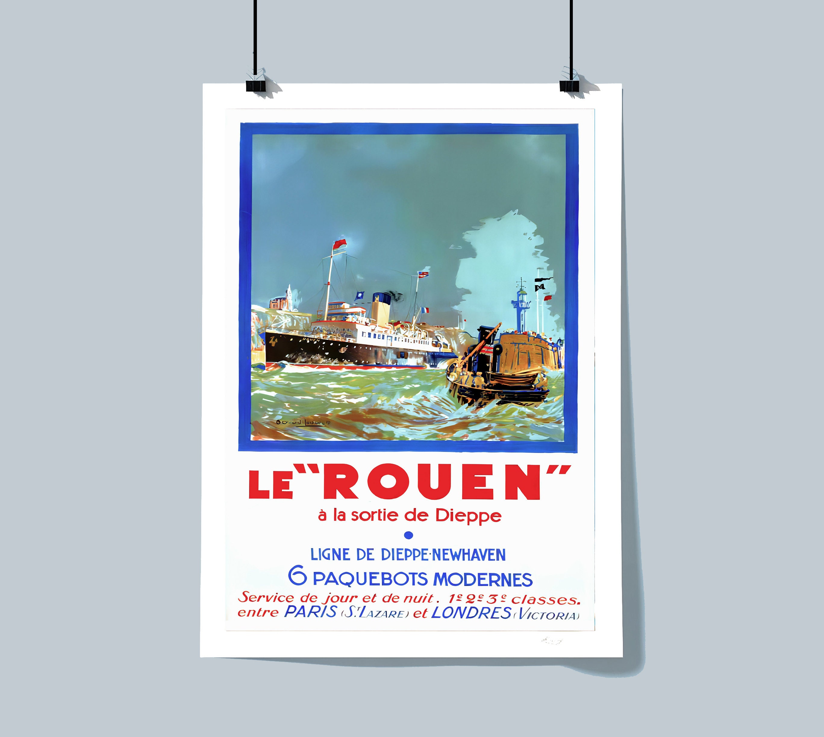 Rouen, a la Sortie de Dieppe, Ligne de Dieppe Newhaven France Vintage Travel Poster - Poster Paper or Canvas Print / Gift Idea