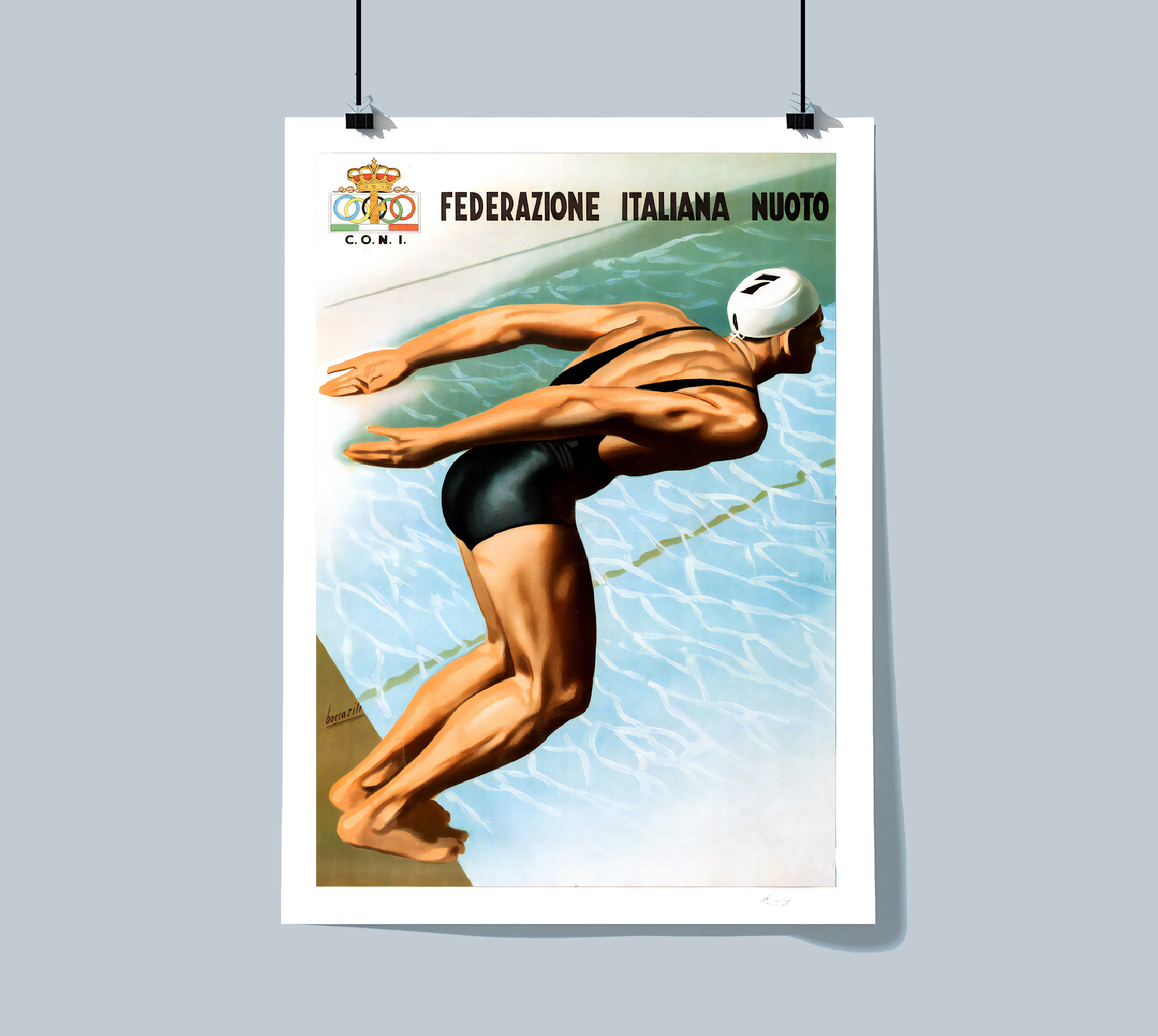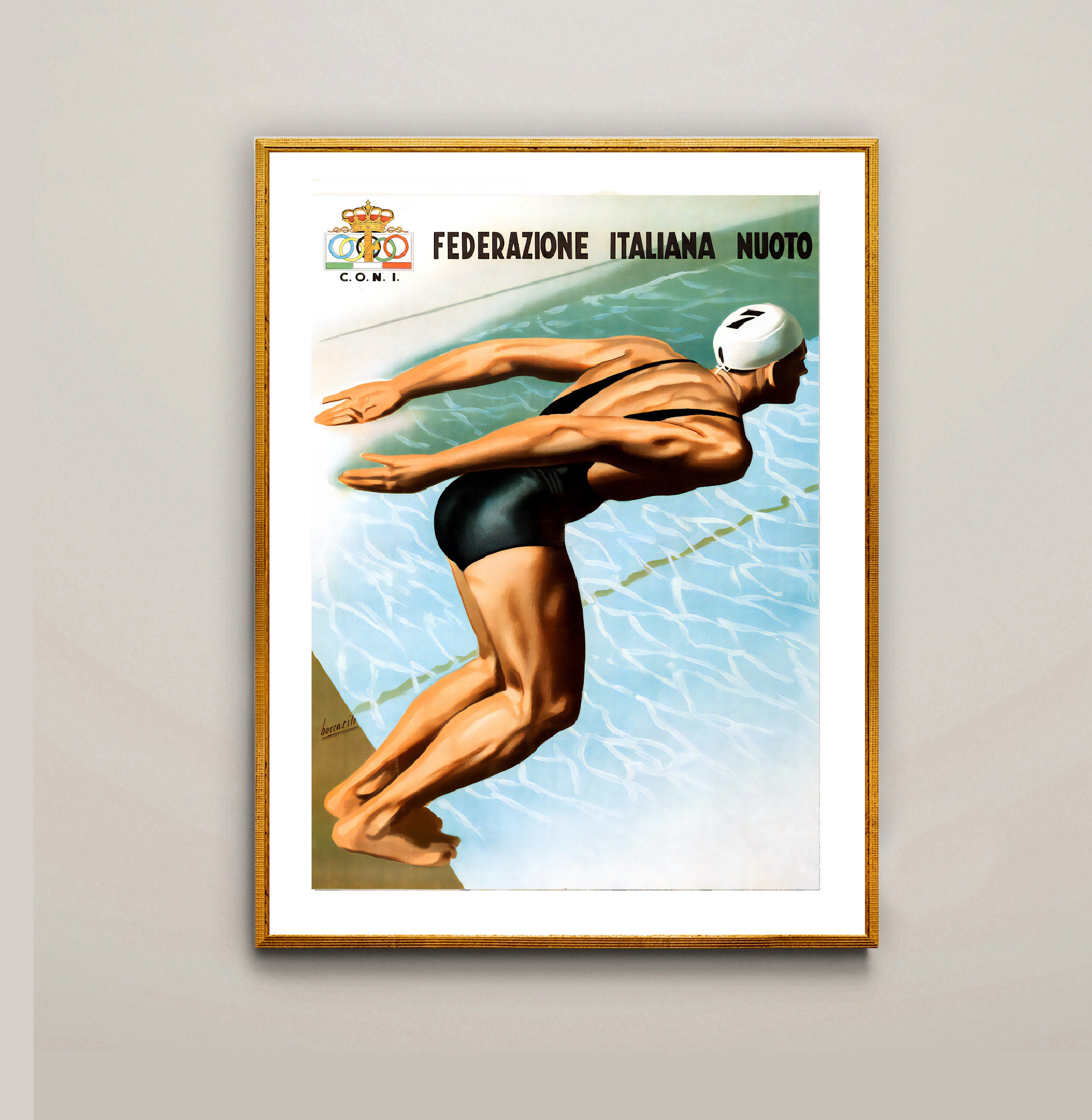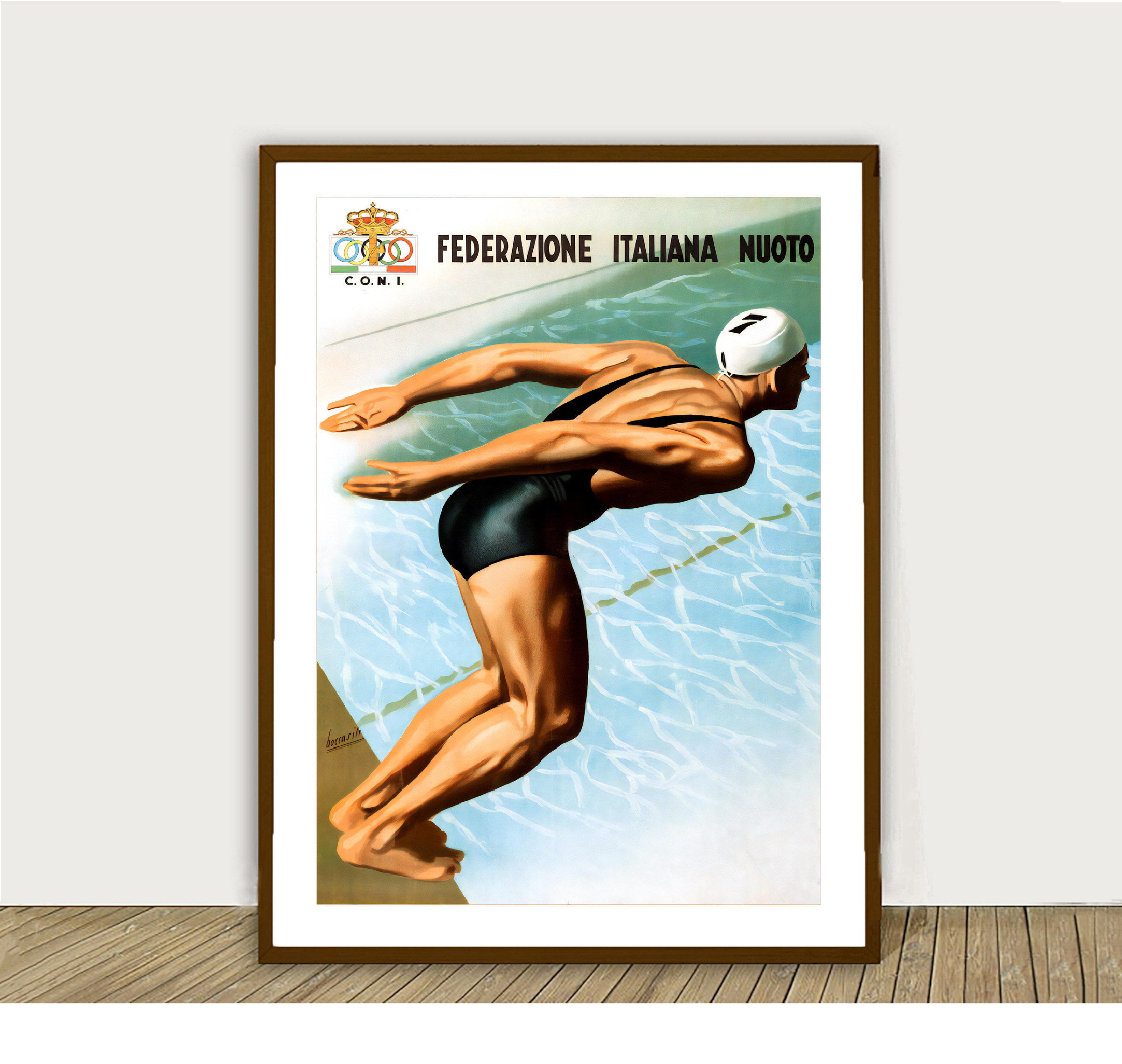 Federazione Italiana Nuoto (Italian Swimming Federation) Vintage Sport Poster - Poster Paper or Canvas Print / Gift Idea / Wall Decor