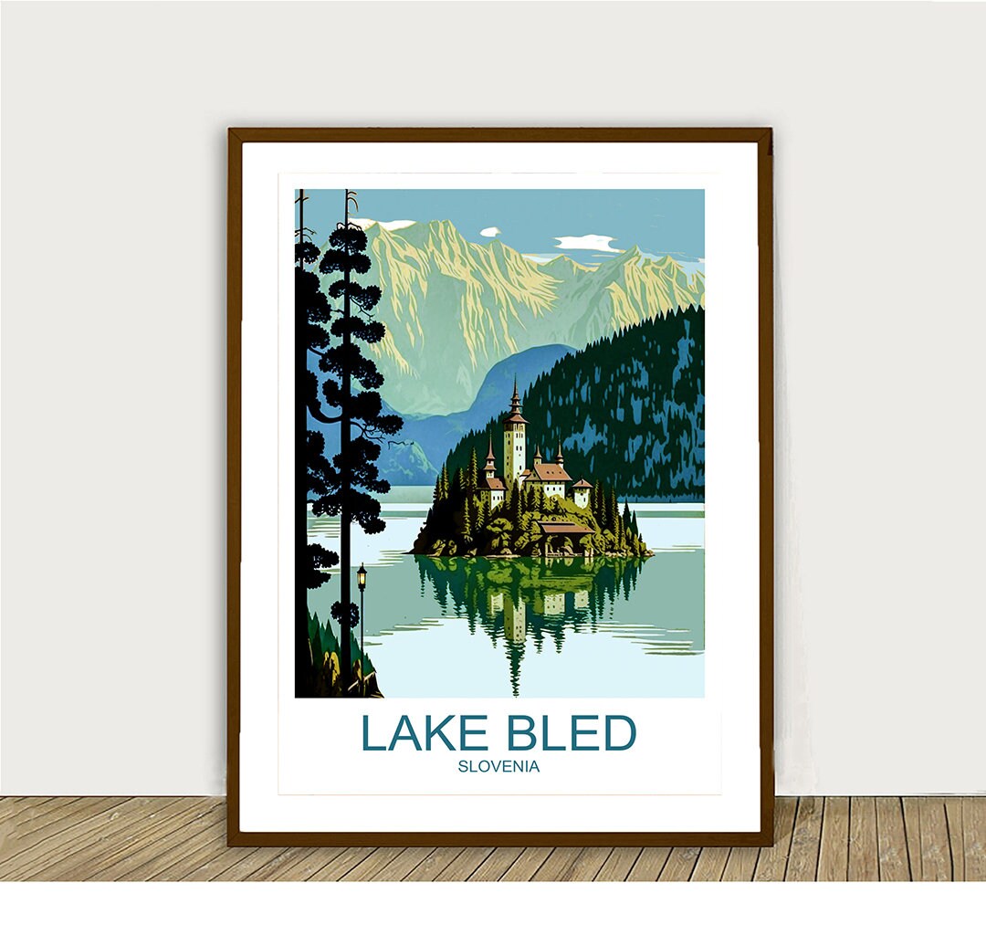 Lake Bled Slovenia Travel Poster: Giclee Art Print