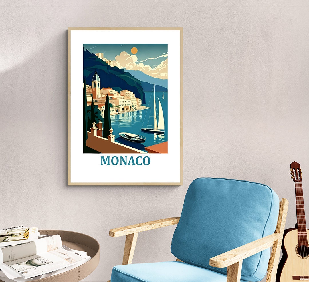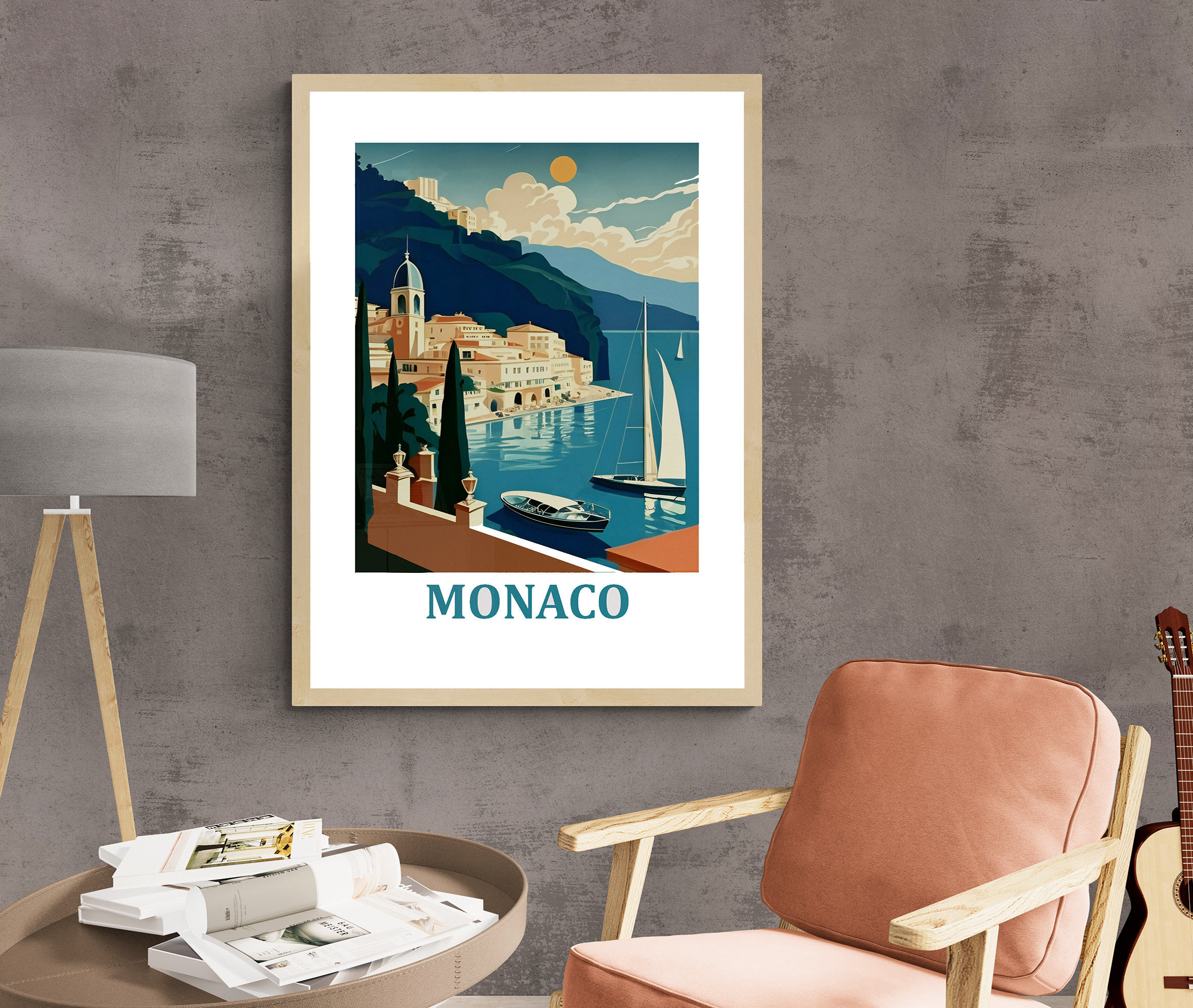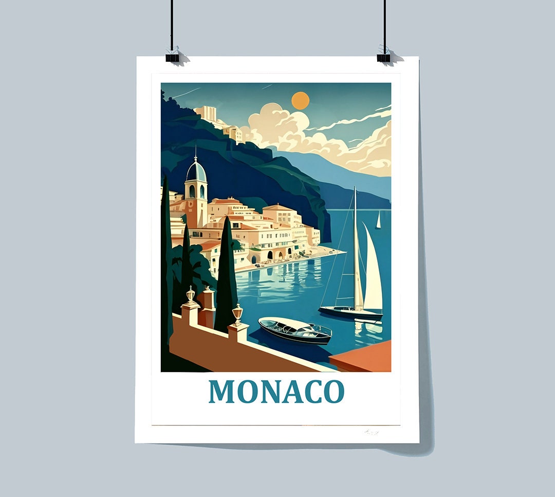 Monaco France Travel Poster: Vintage Riviera Art Print