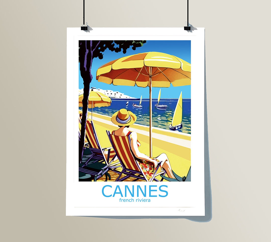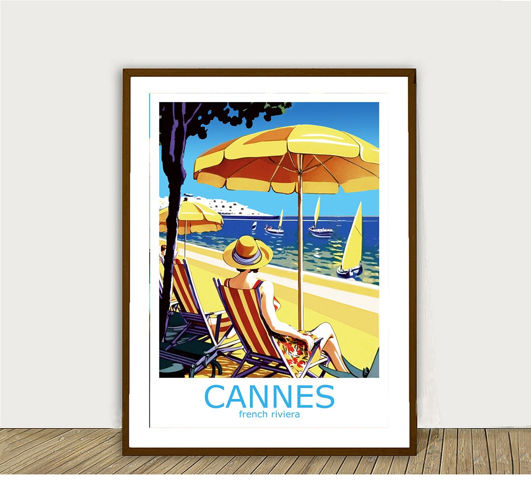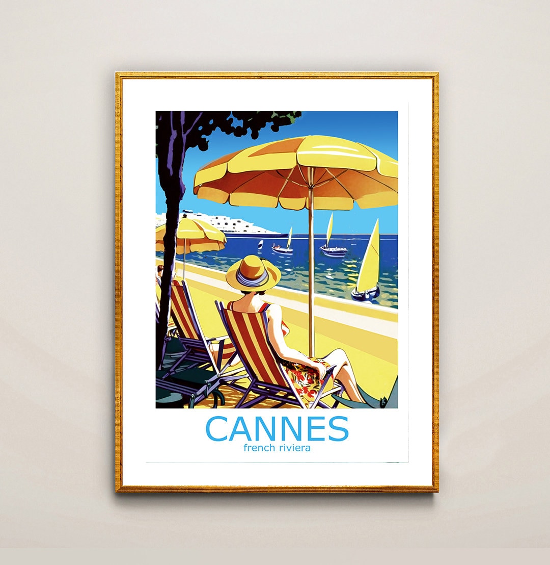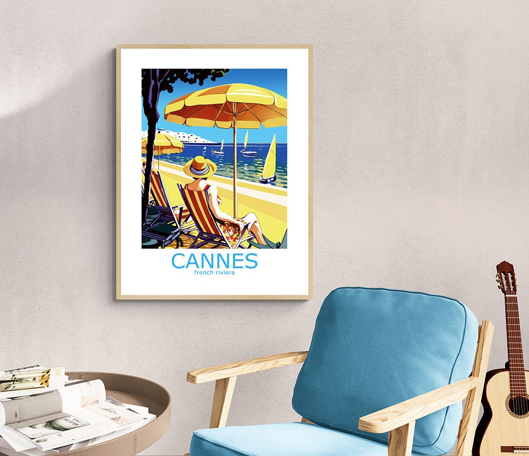 Cannes French Riviera Travel Poster: Vintage Style Wall Art